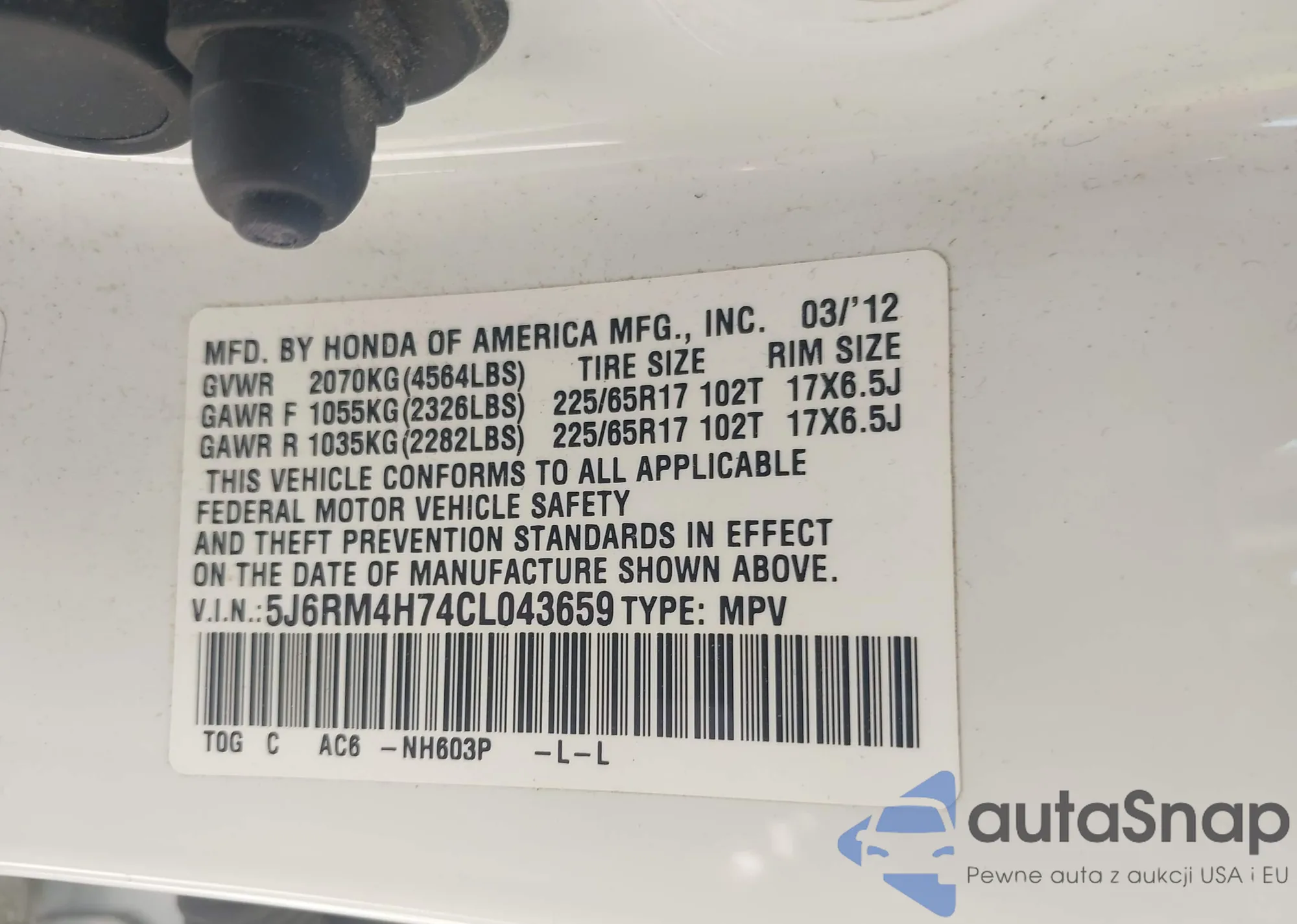 LOT: 42043037 VIN: JHMCP26708C070969
