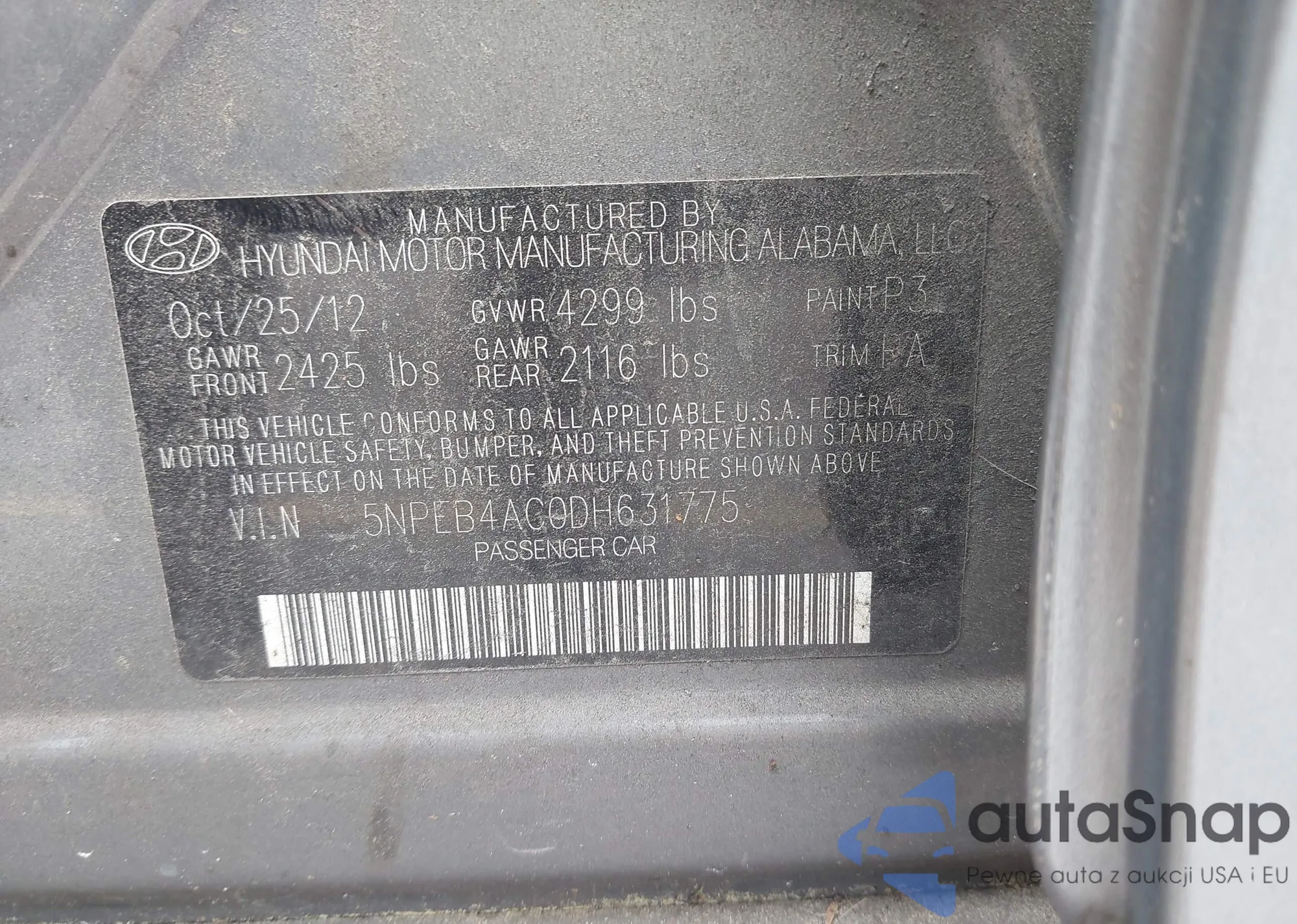 • VIN 5NPEB4AC0DH631775