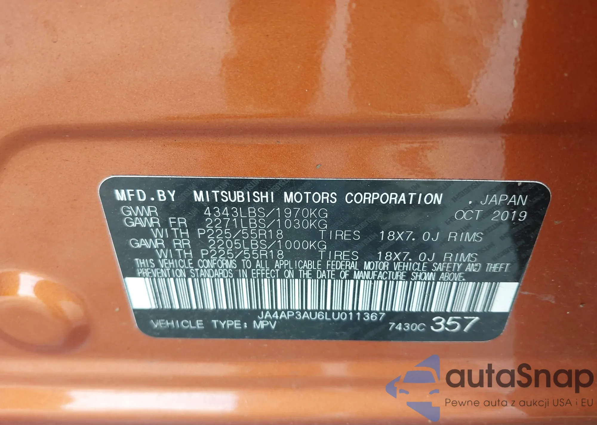 LOT: 42492493 VIN: JA4AP3AU6LU011367