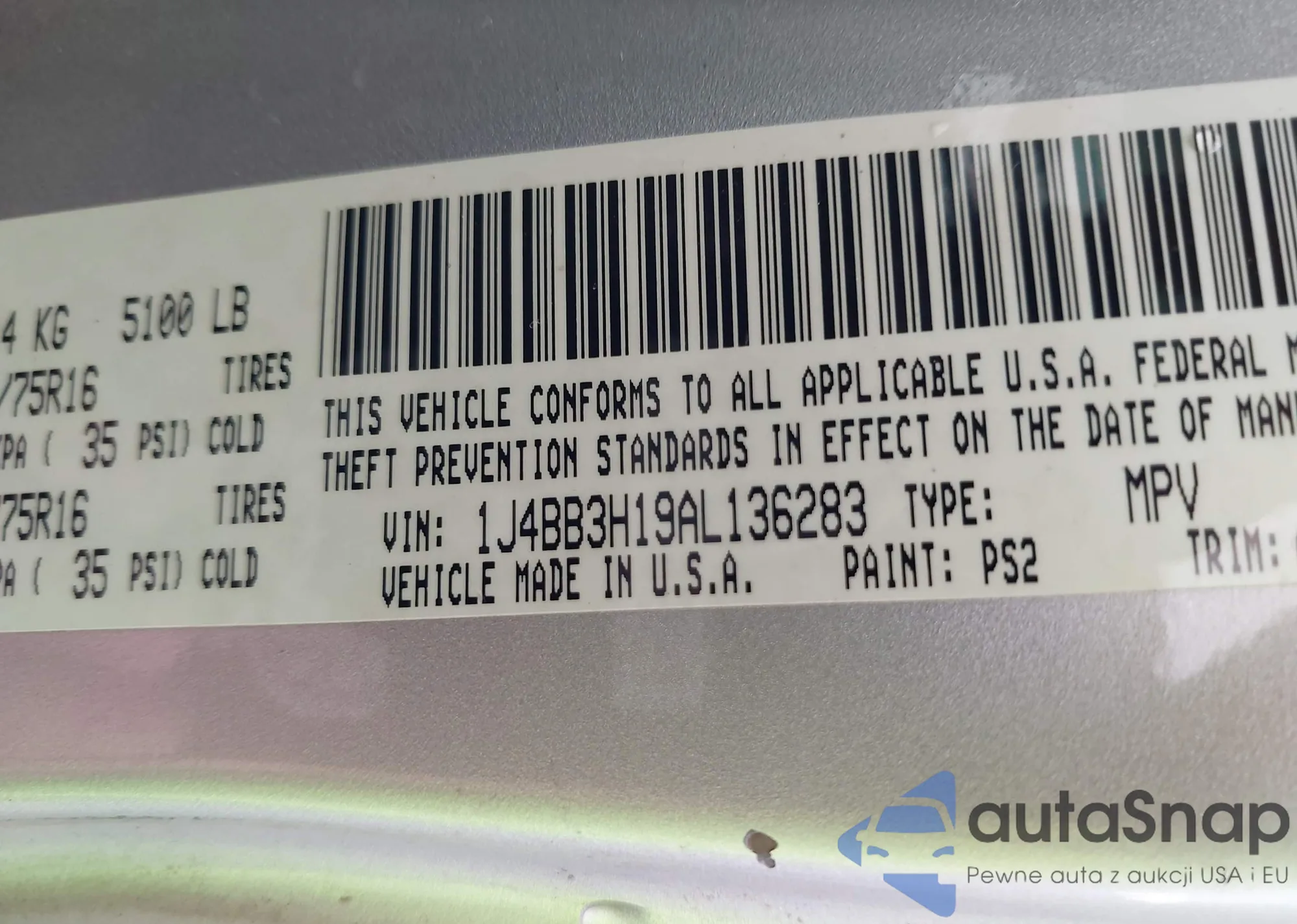 • VIN 1J4BB3H19AL136283