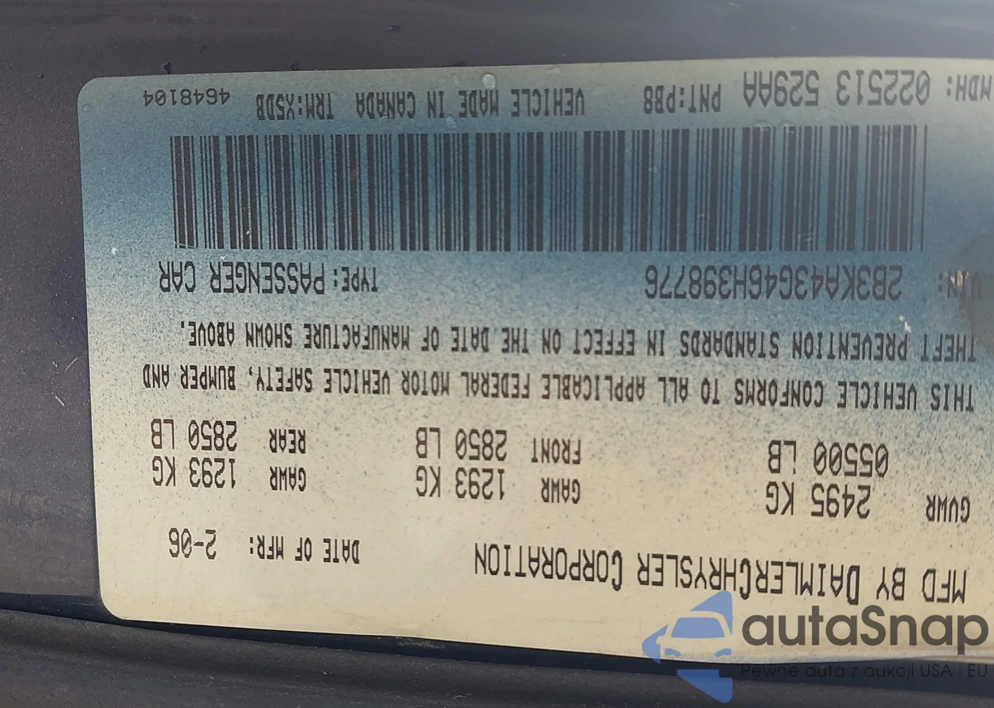• VIN 2B3KA43G46H398776
