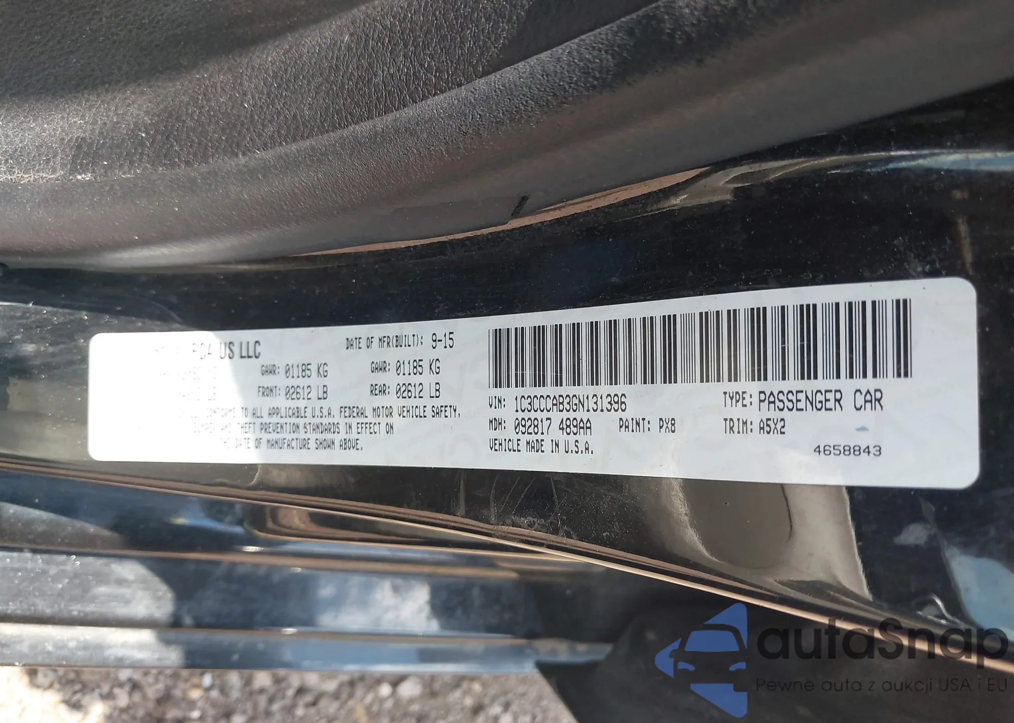 LOT: 42667657 VIN: 1C3CCCAB3GN131396