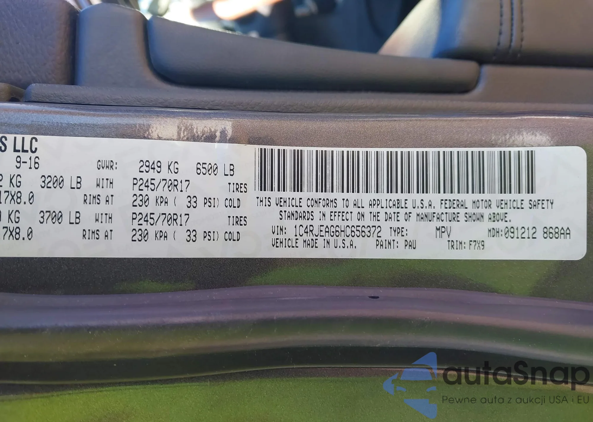 • VIN 1C4RJEAG6HC656372