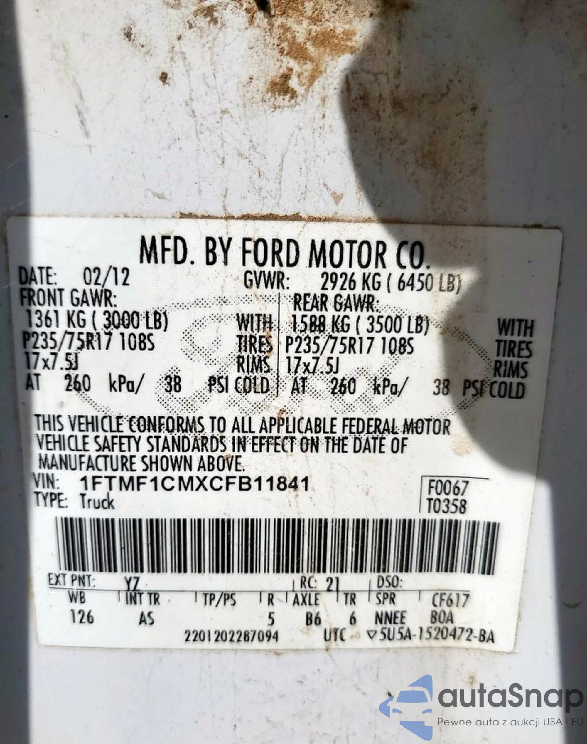 • VIN 1FTMF1CMXCFB11841