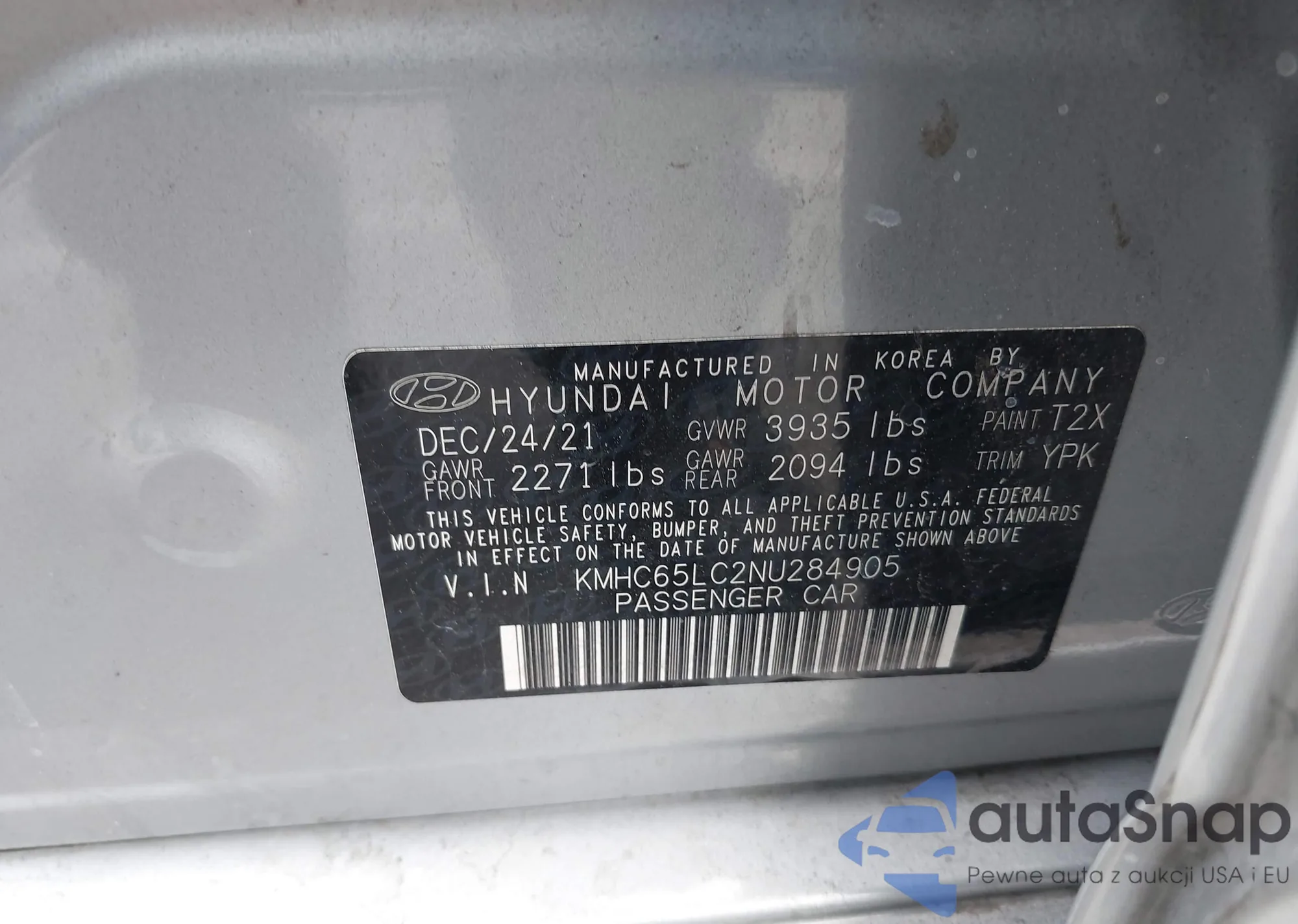 LOT: 42193497 VIN: KMHC65LC2NU284905