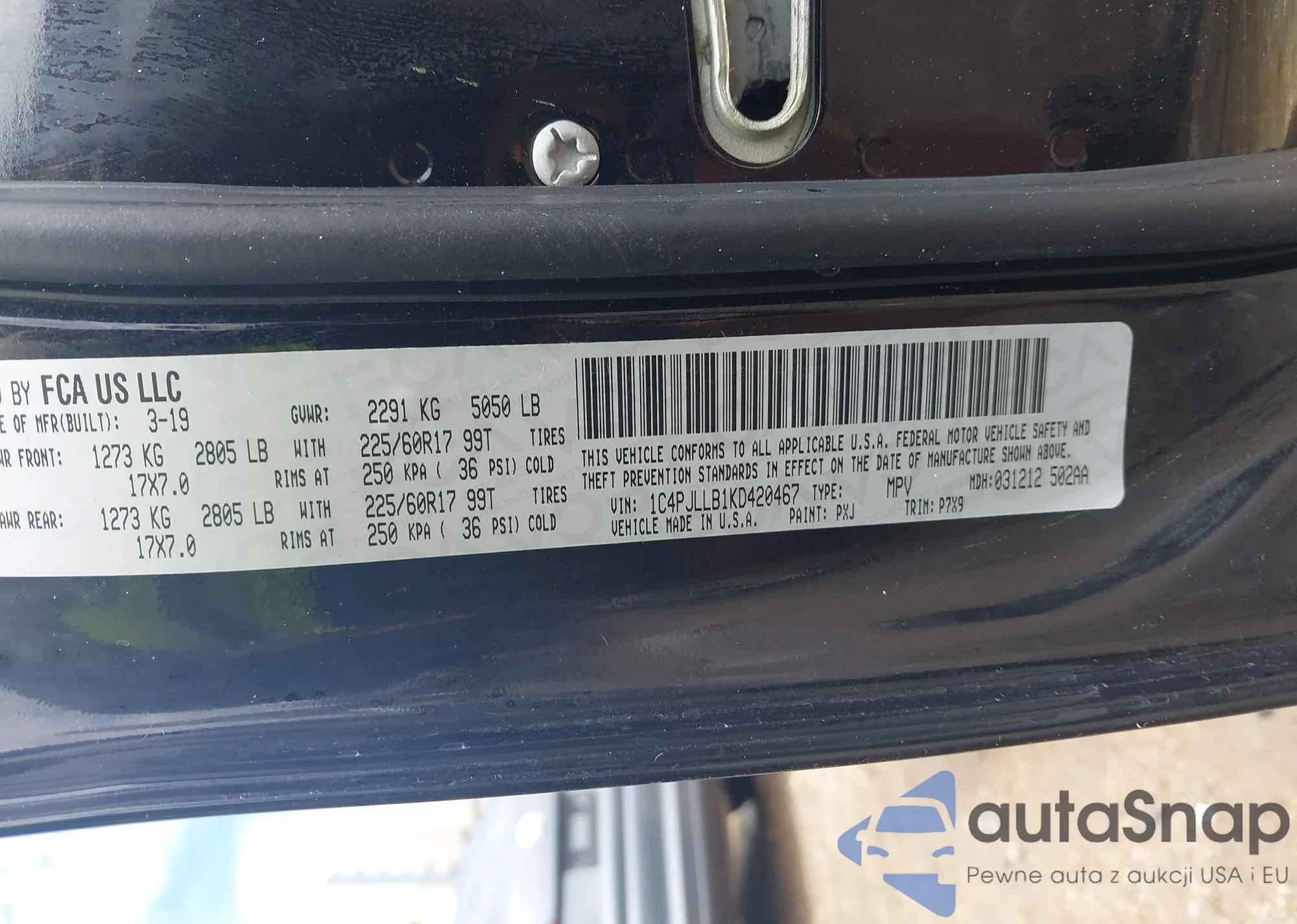 LOT: 42331957 VIN: 1C4PJLLB1KD420467