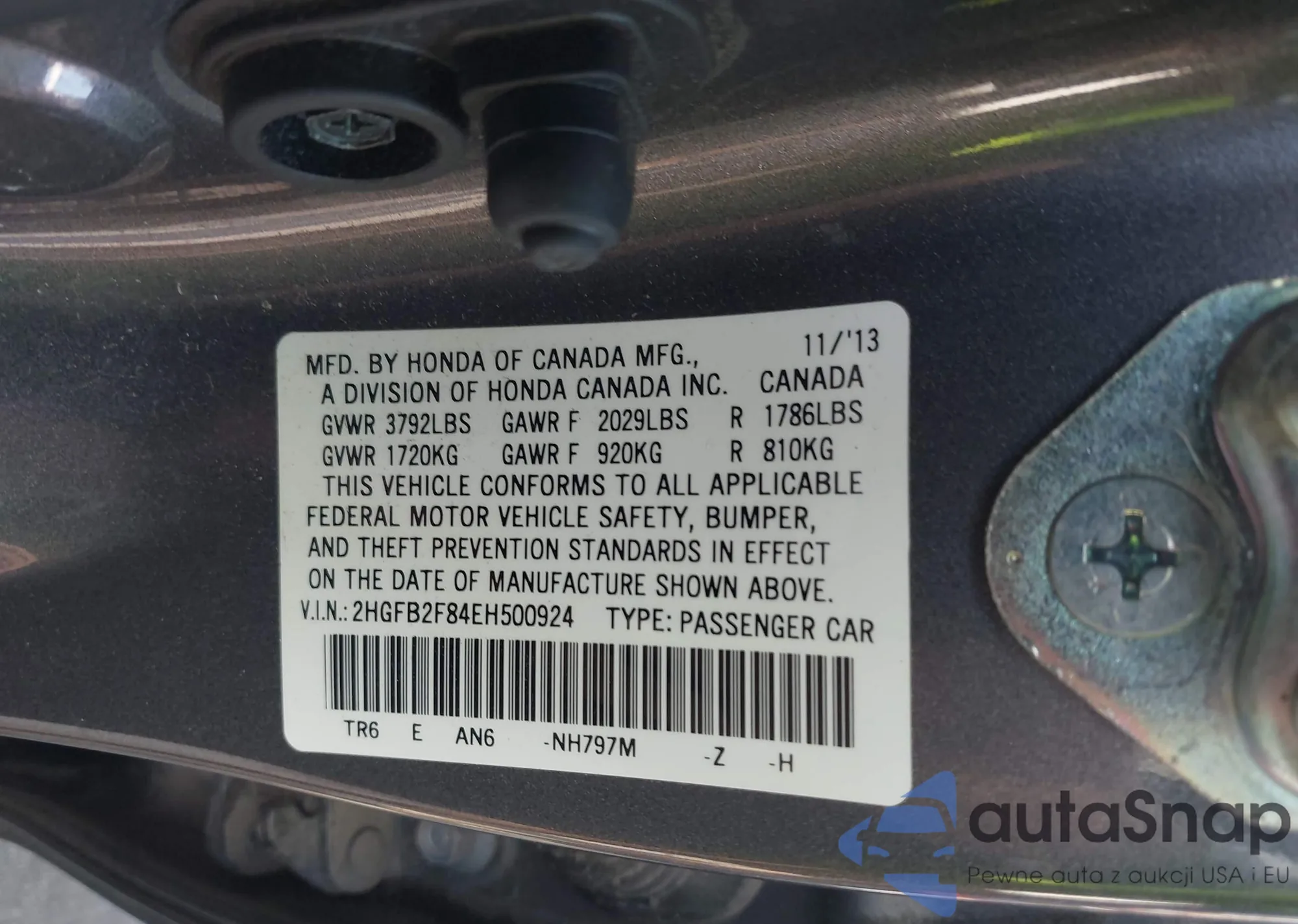 • VIN 2HGFB2F84EH500924