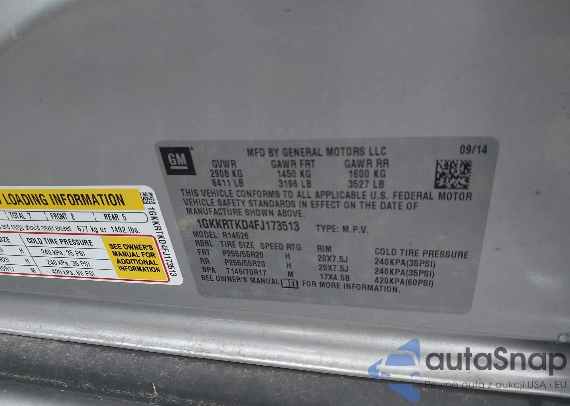 LOT: 42497595 VIN: 1GKKRTKD4FJ173513