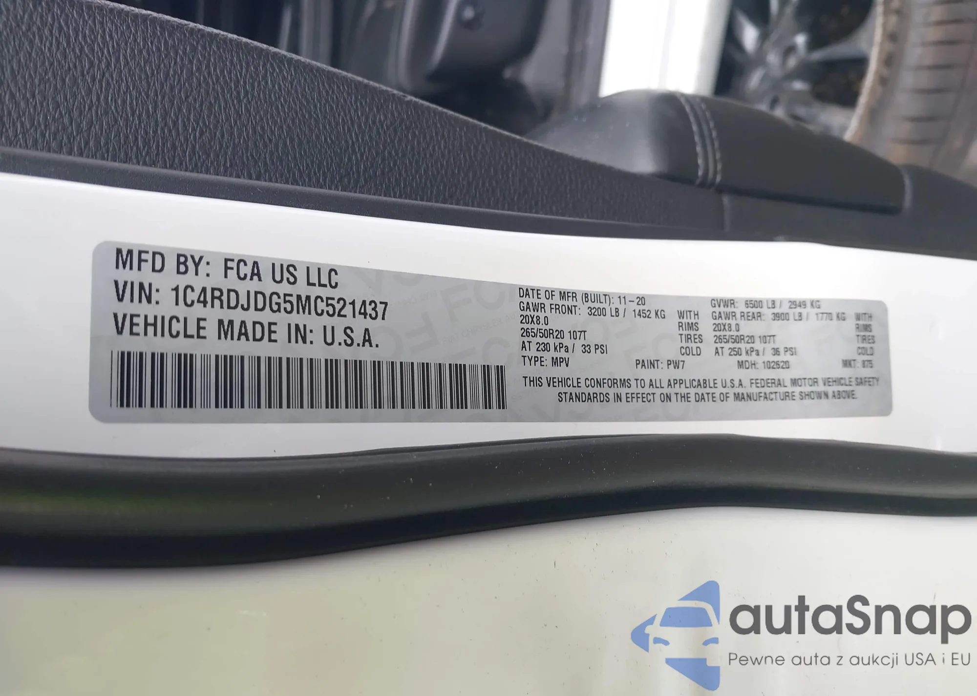 LOT: 41604984 VIN: 1G1FY6S00M4105177