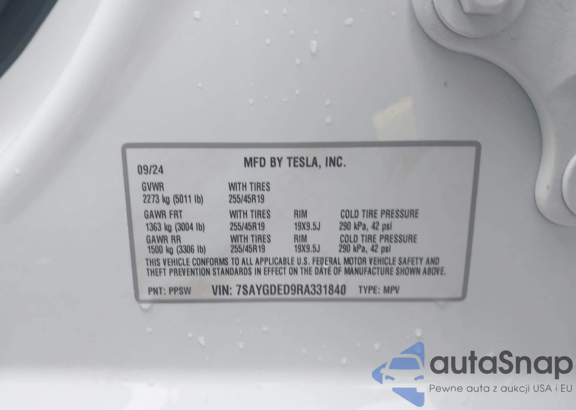 LOT: 42350926 VIN: 7SAYGDED9RA331840