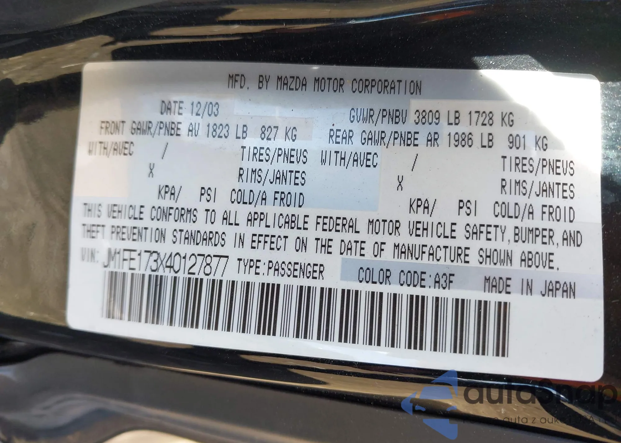 • VIN JM1FE173X40127877