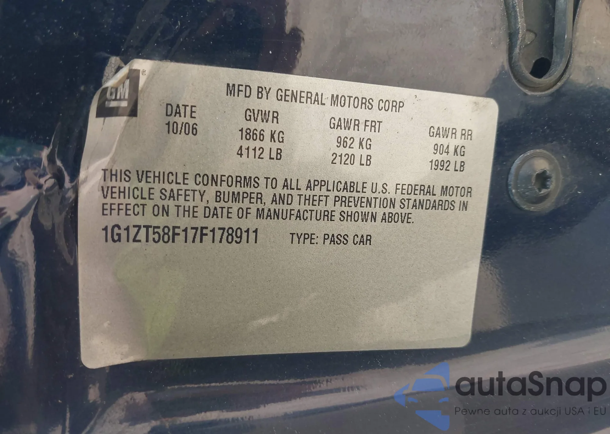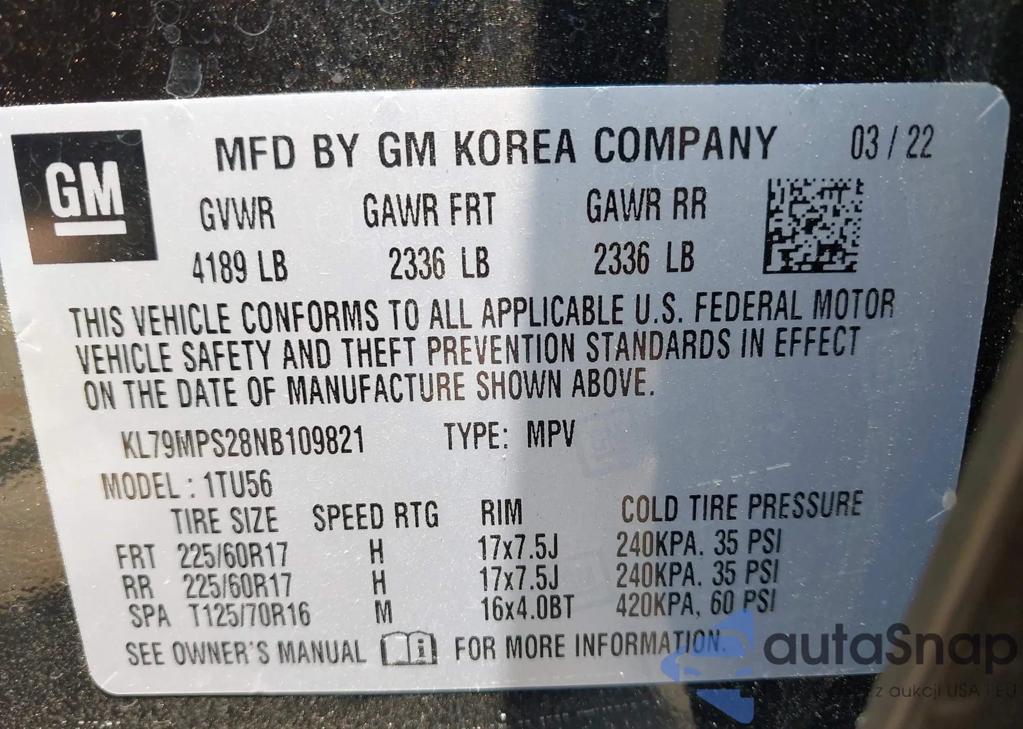 • VIN KL79MPS28NB109821
