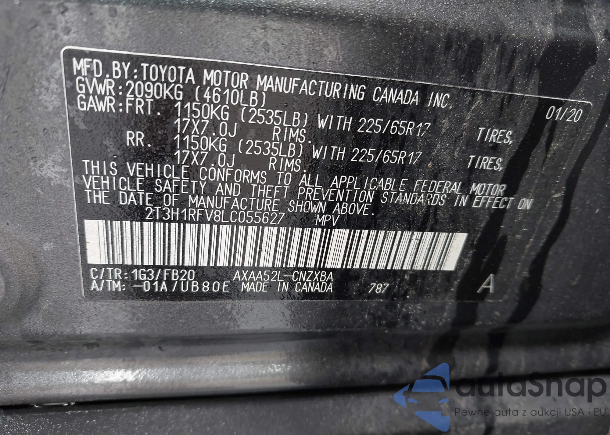 LOT: 42245693 VIN: 2T3H1RFV8LC055627