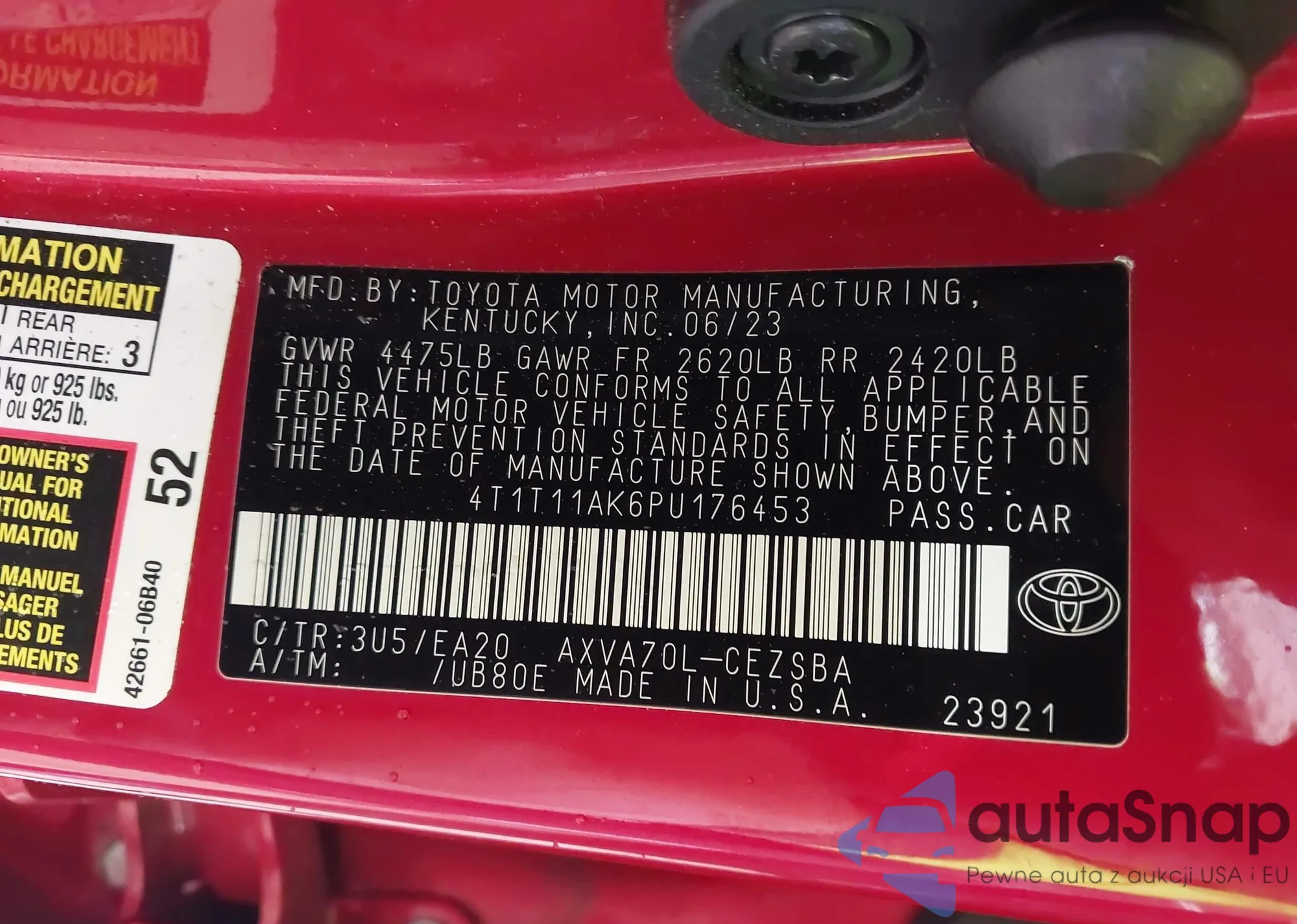 • VIN 4T1T11AK6PU176453