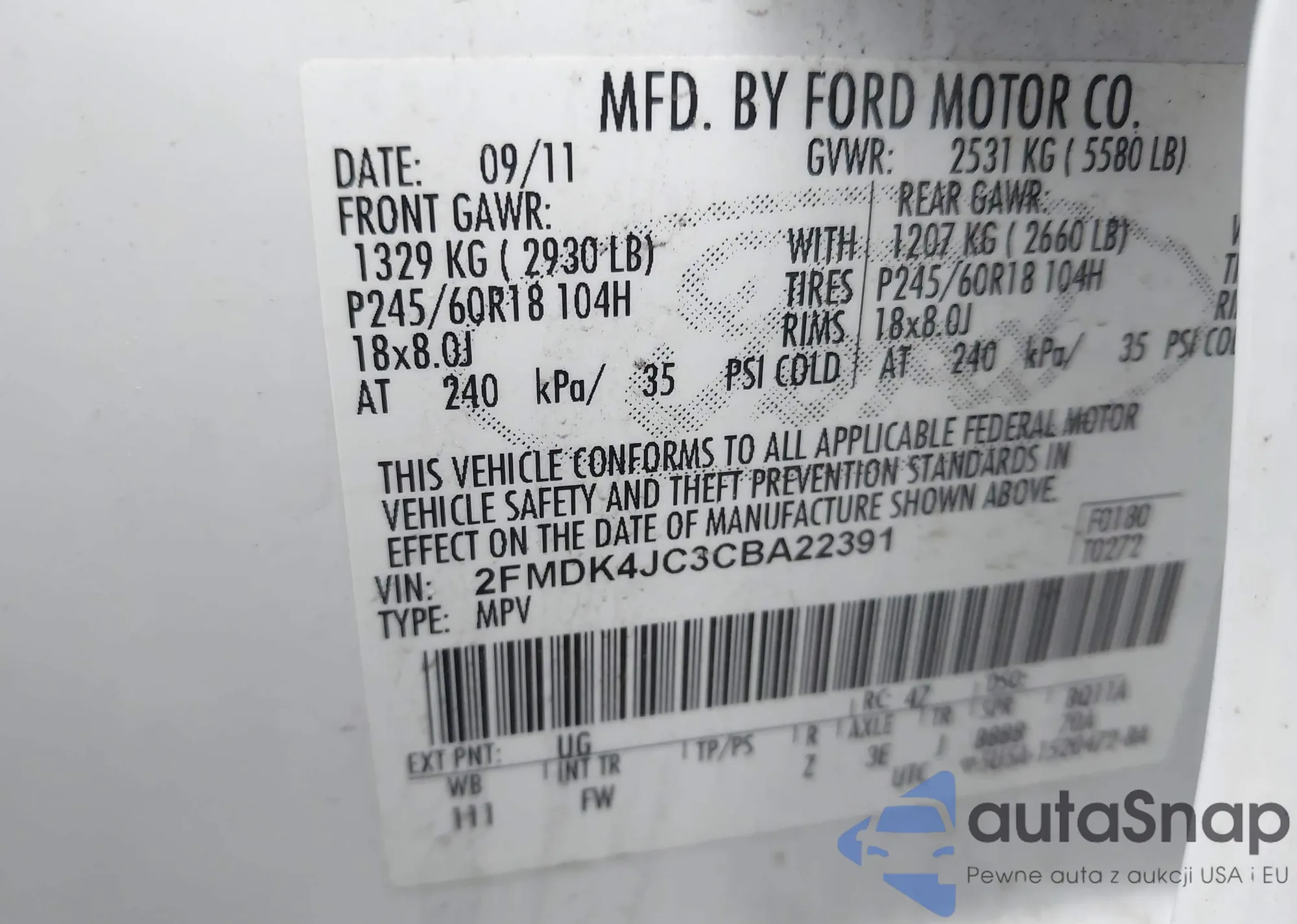LOT: 42502934 VIN: WMWZB3C55DWM31279