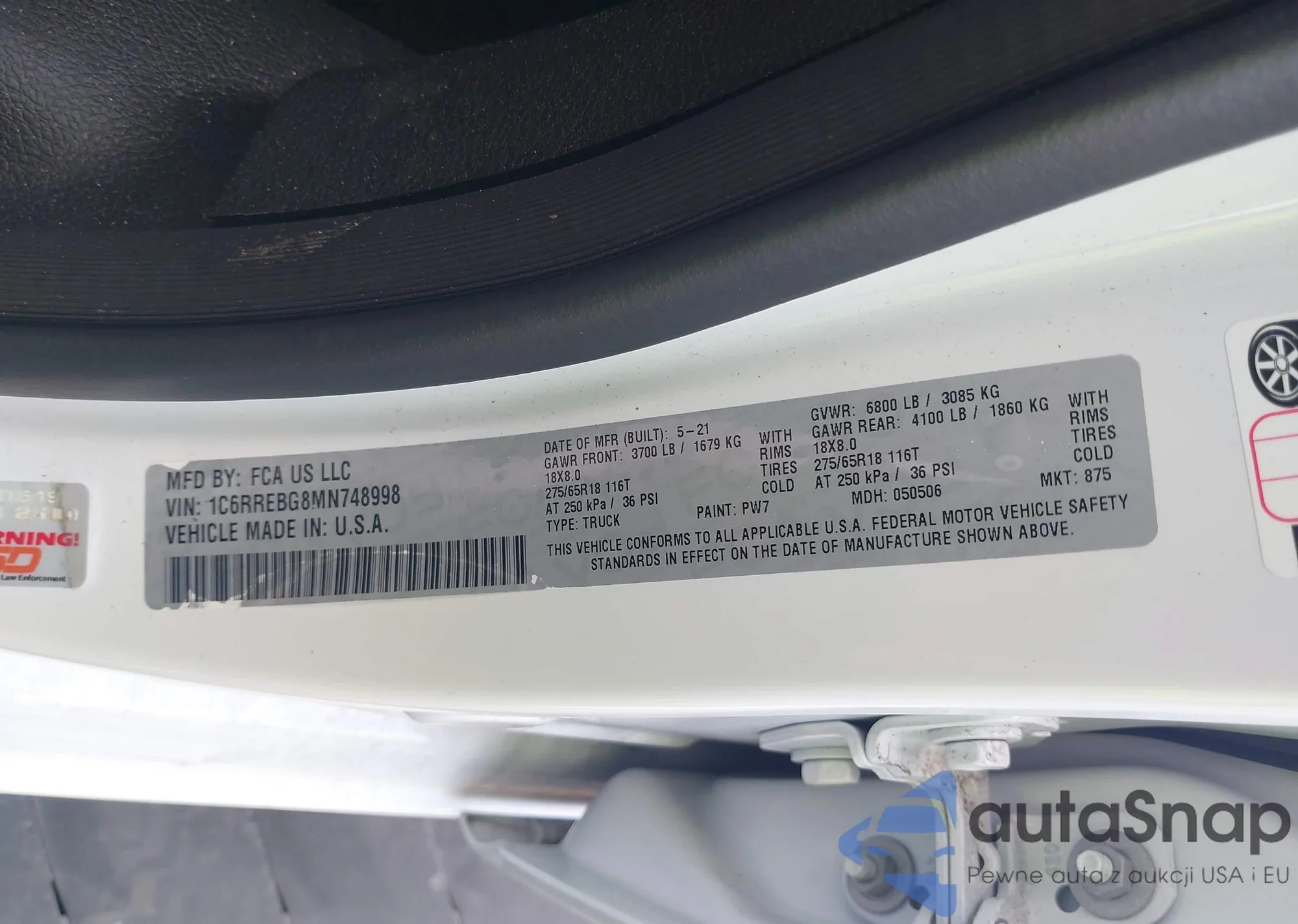 • VIN 1C6RREBG8MN748998