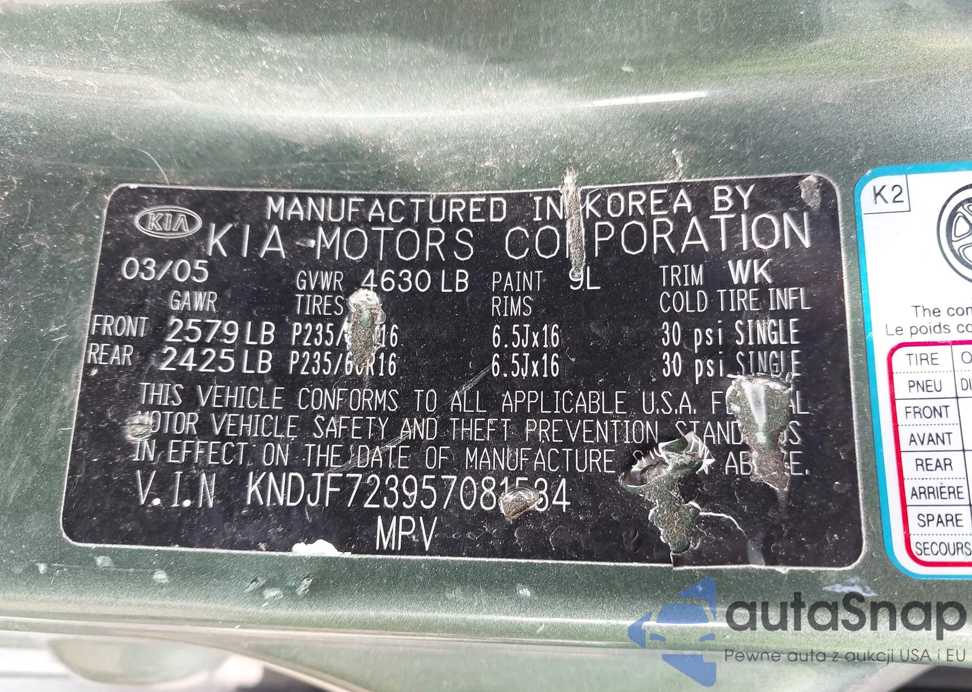 LOT: 42504941 VIN: KNDJF723957081534