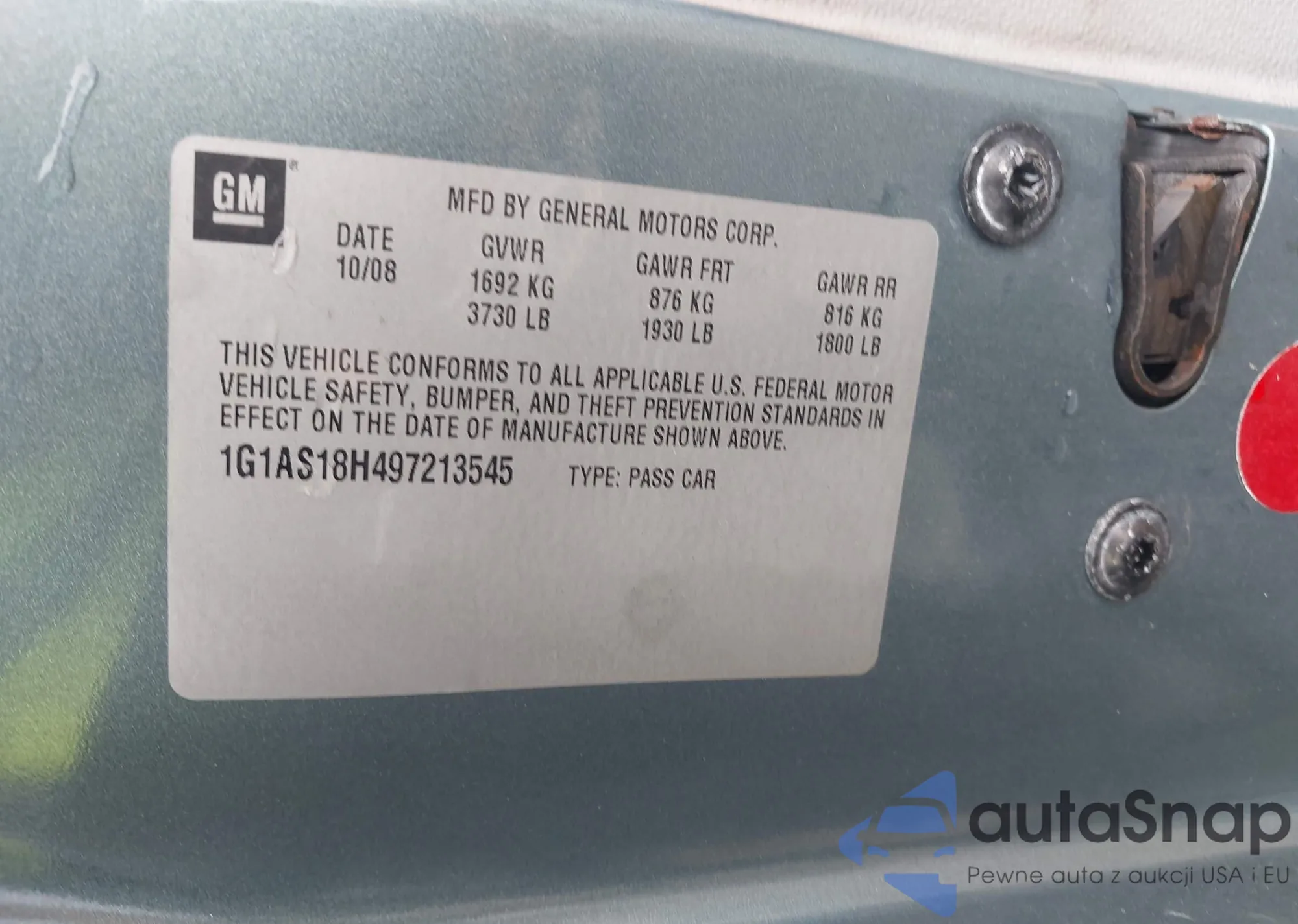 • VIN 1G1AS18H497213545