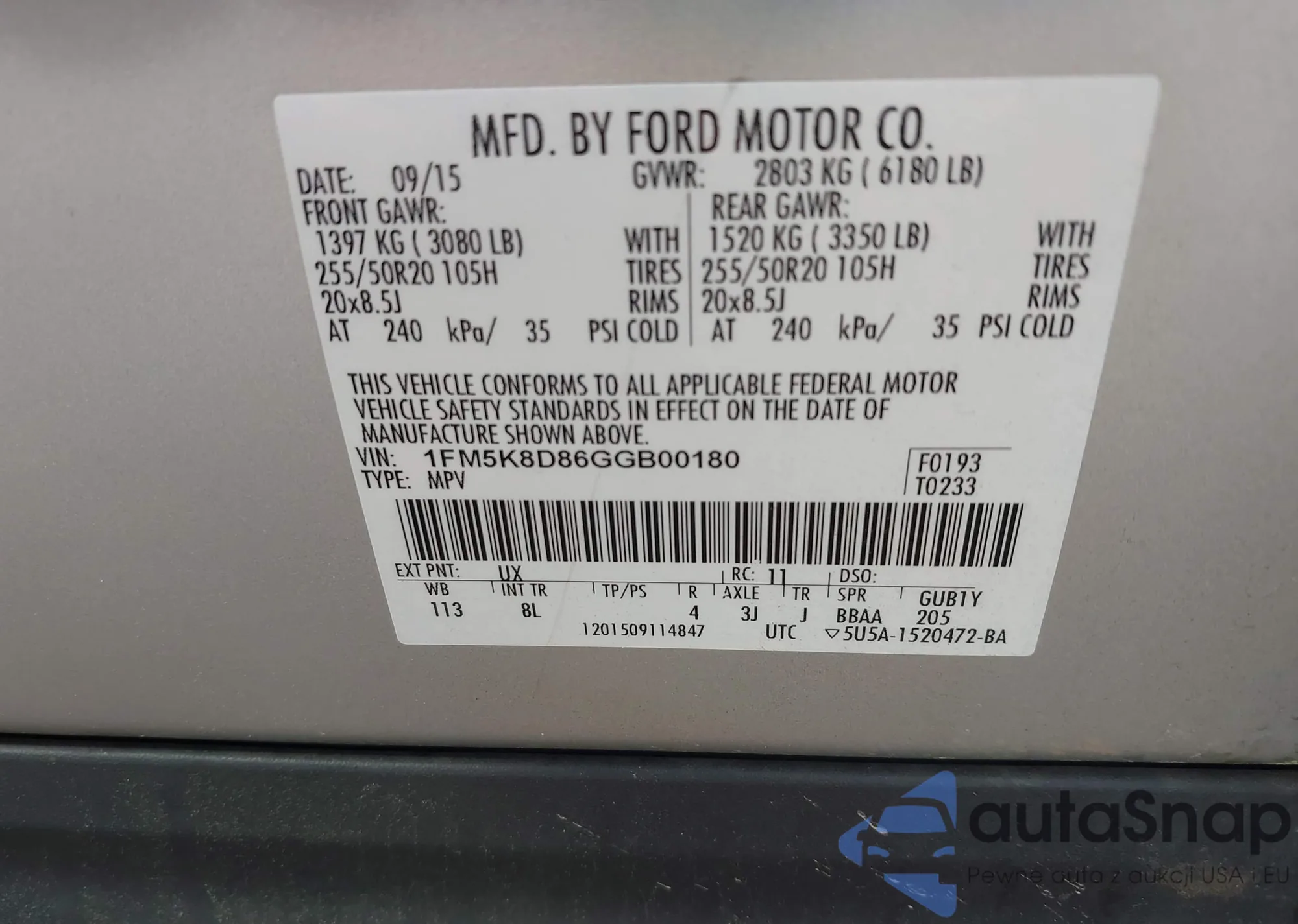 • VIN 1FM5K8D86GGB00180