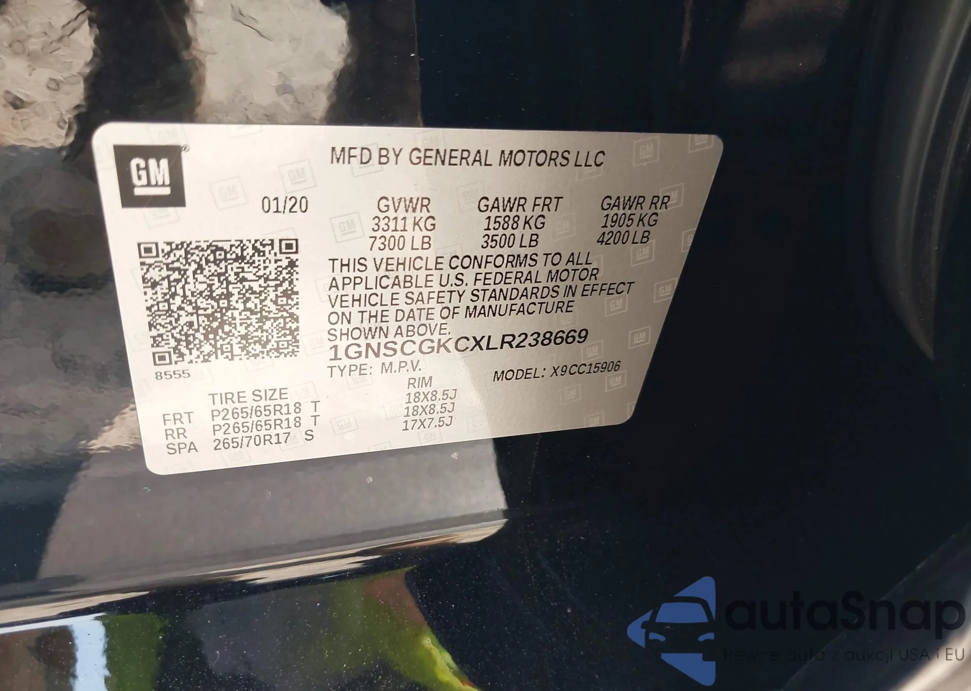 LOT: 42388187 VIN: 1GNSCGKCXLR238669