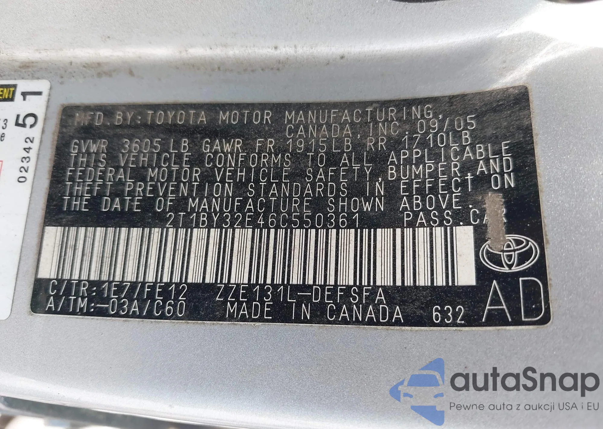 LOT: 42461157 VIN: 2T1BY32E46C550361