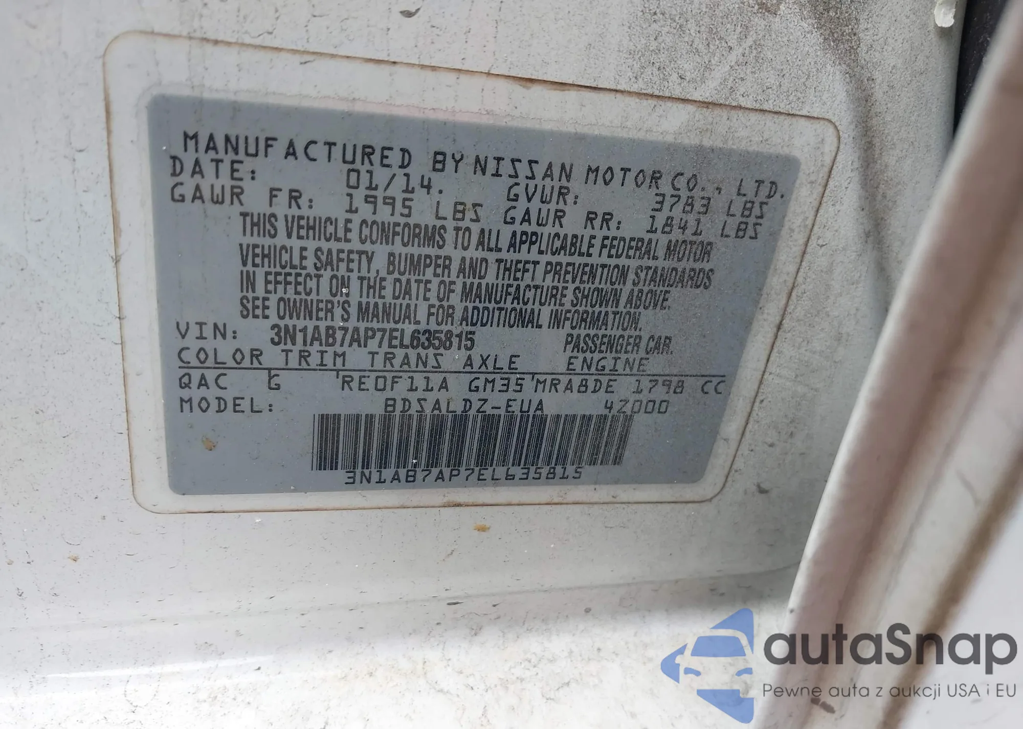 • VIN JN8BT3BB0SW160982