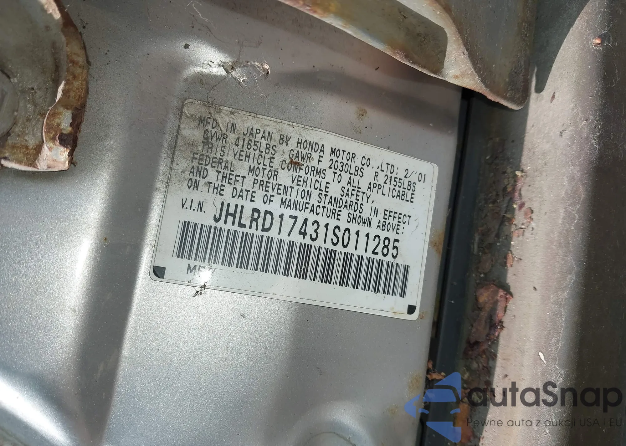 • VIN JHLRD17431S011285