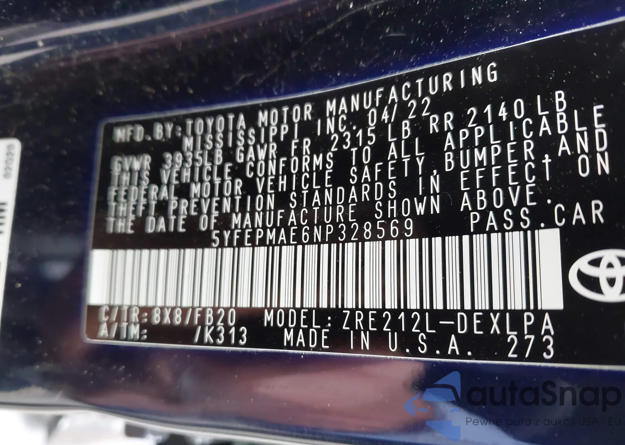 • VIN 5XXGU4L36GG080140
