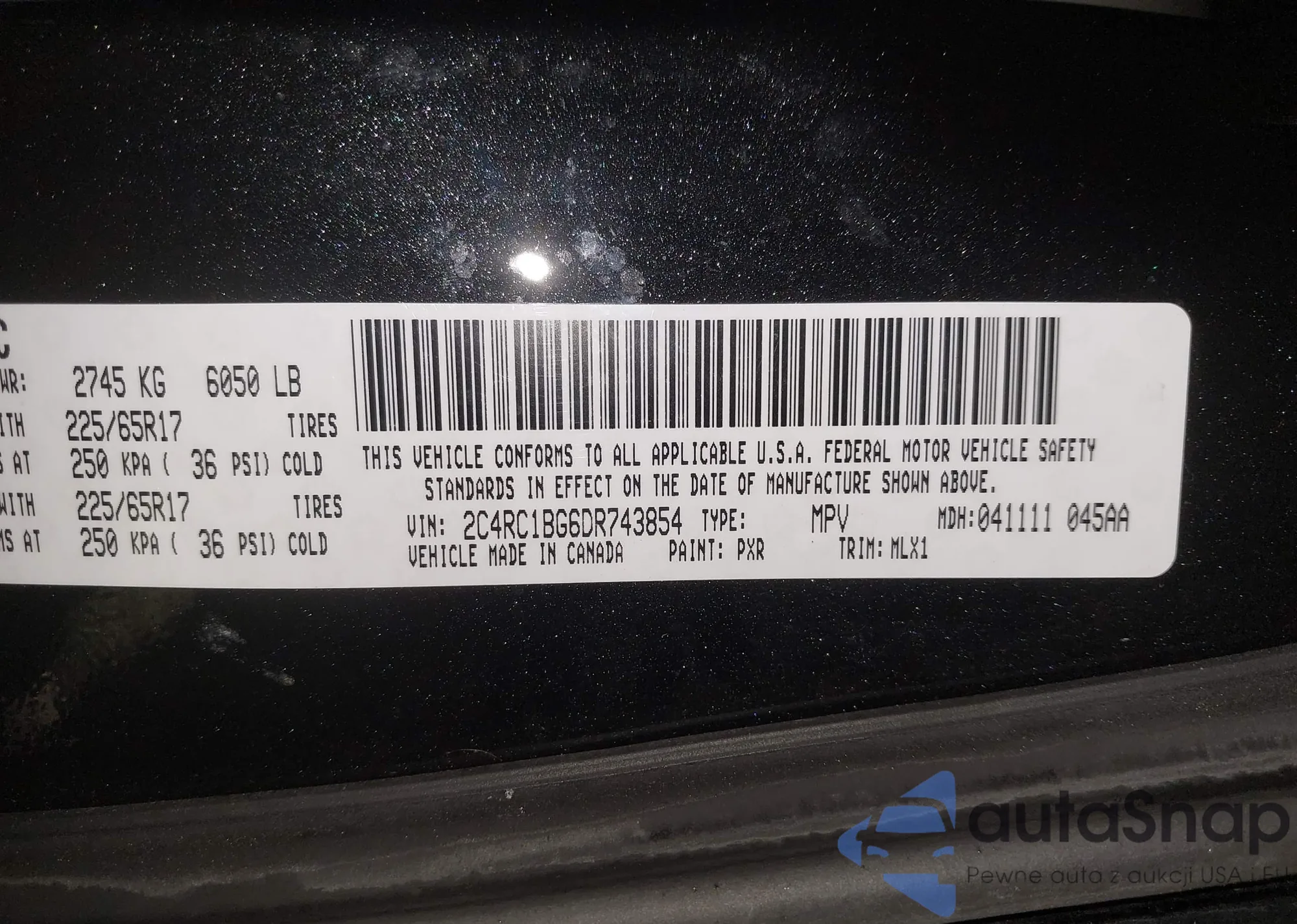 • VIN 2C4RC1BG6DR743854