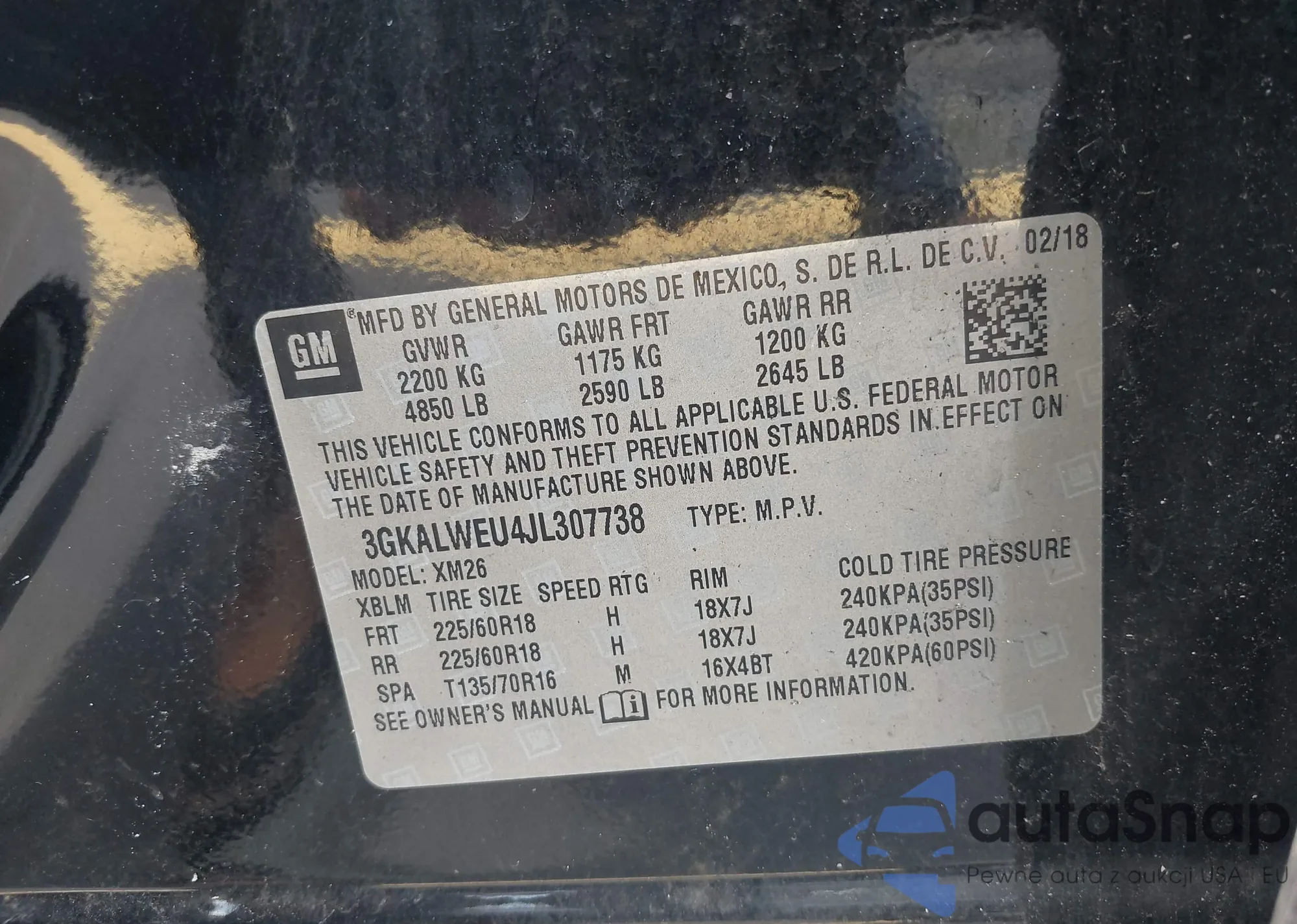 LOT: 42355798 VIN: 3GKALWEU4JL307738