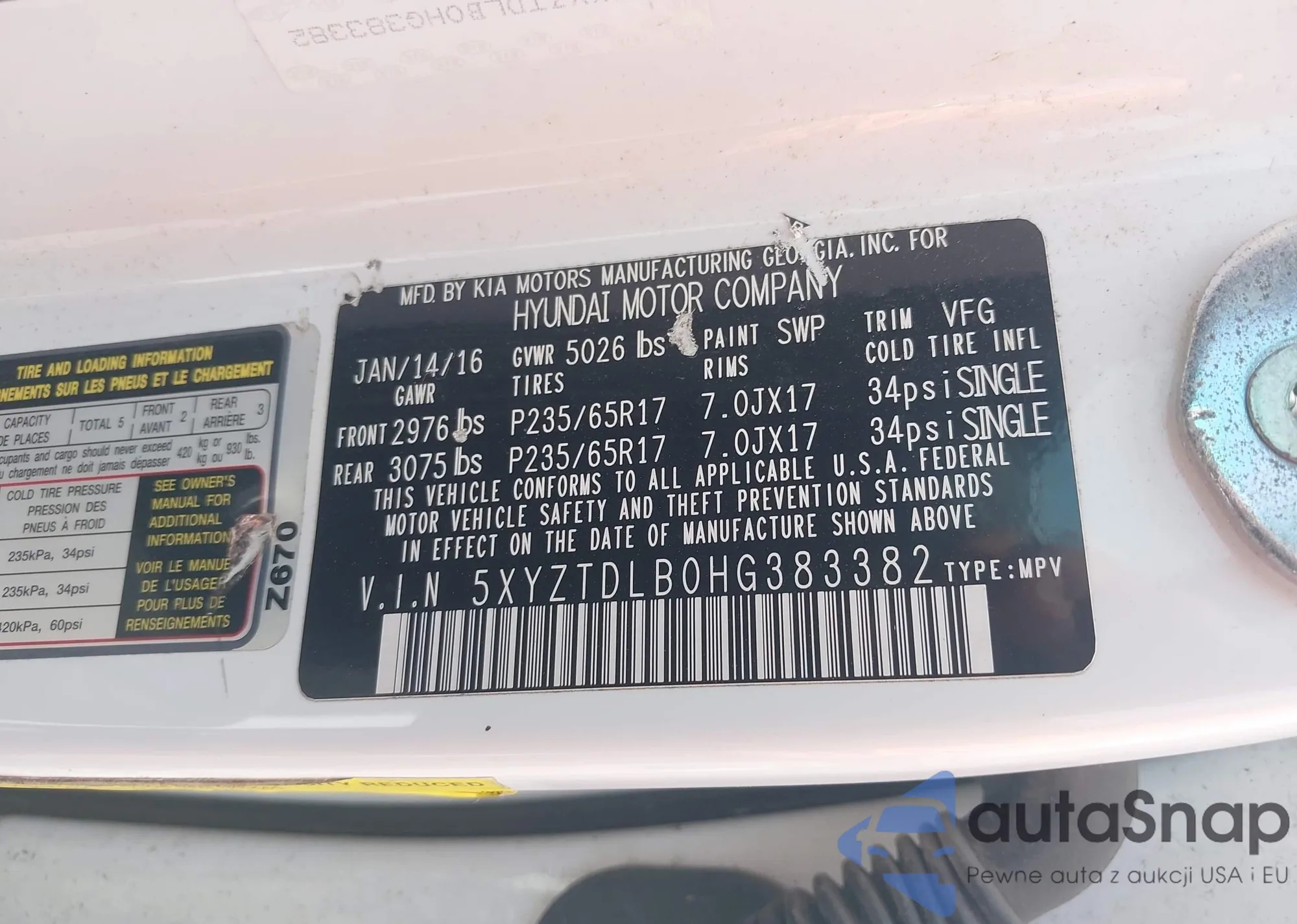• VIN 5XYZTDLB0HG383382