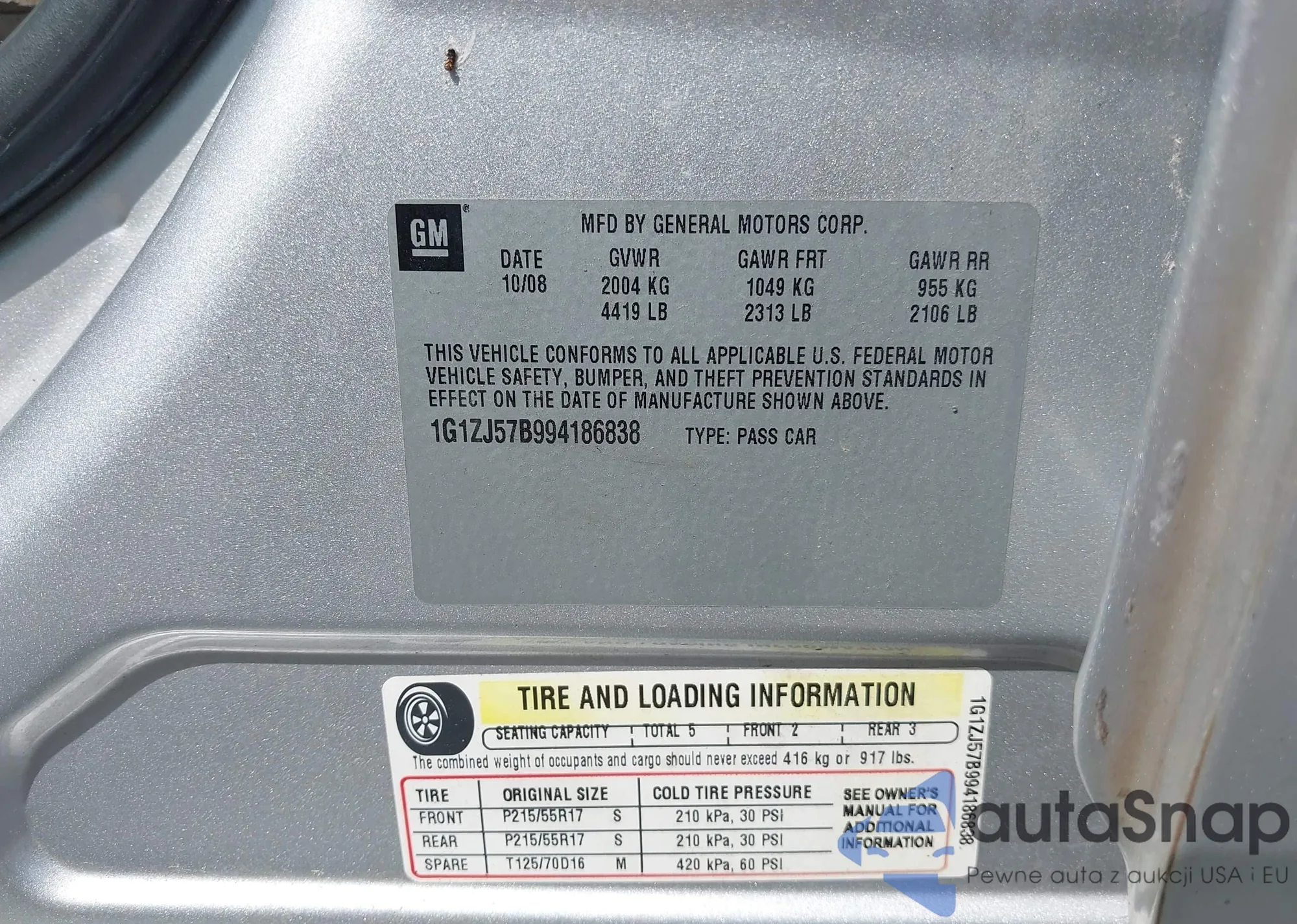 LOT: 42459293 VIN: 1G1ZJ57B994186838