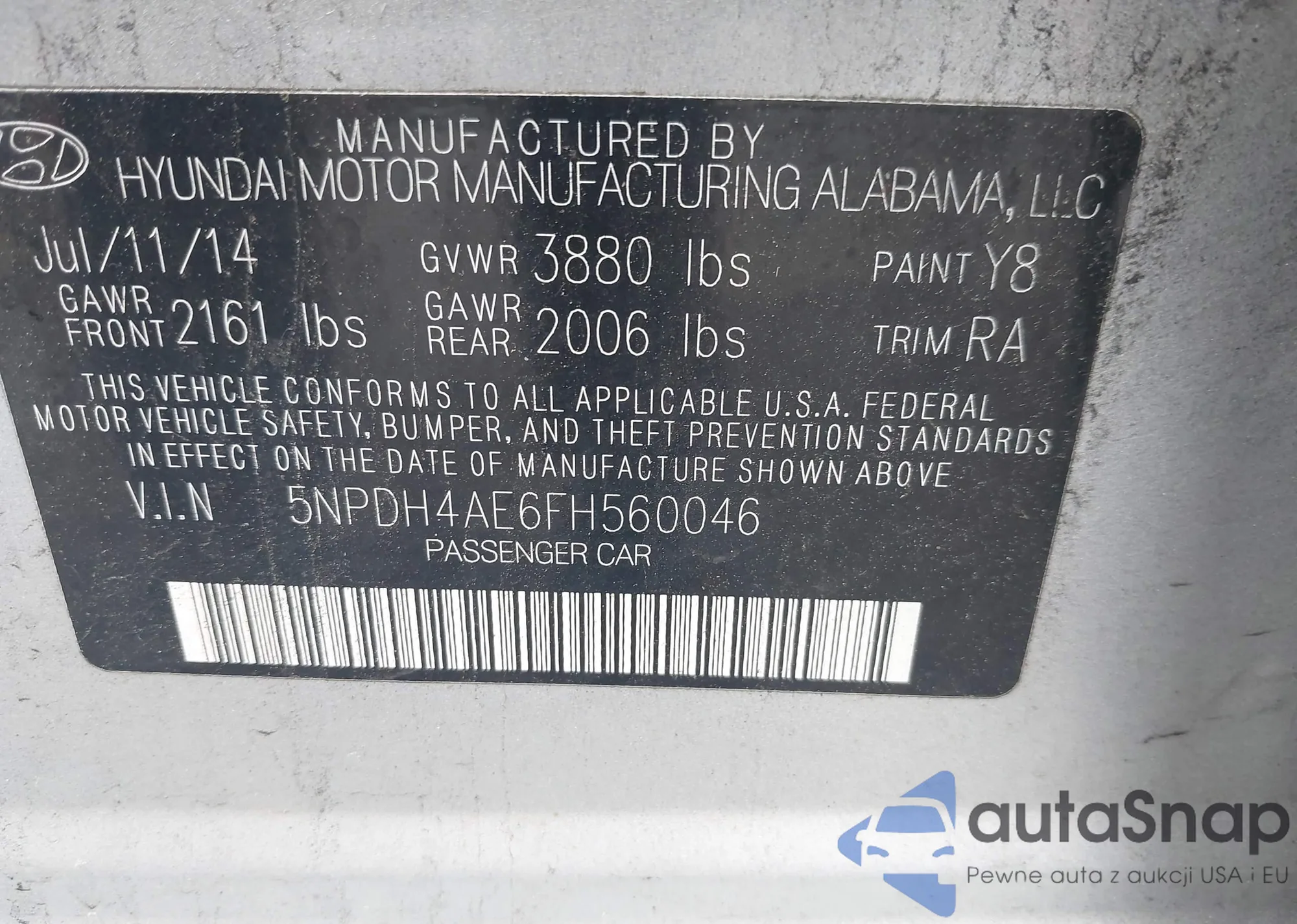 LOT: 42433450 VIN: 5XYZTDLB0HG383382
