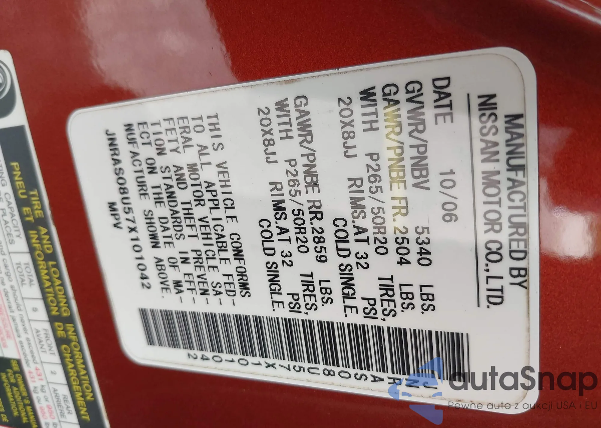 LOT: 42479620 VIN: JNRAS08U57X101042