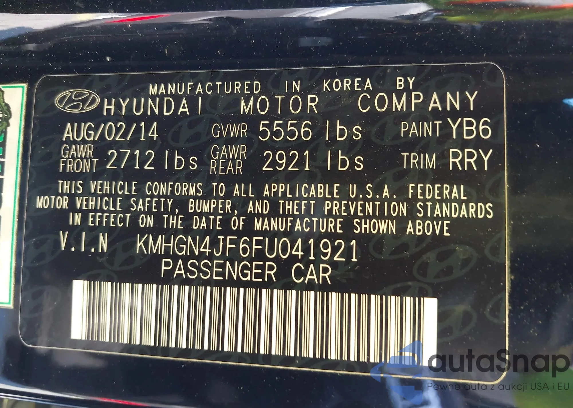 • VIN KMHGN4JF6FU041921