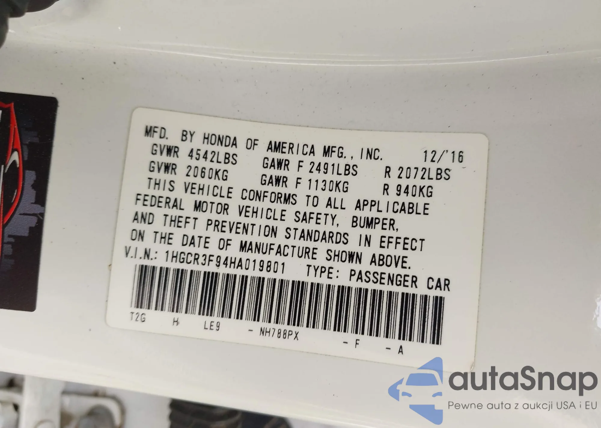 LOT: 42337943 VIN: 19XFC2F52HE229248