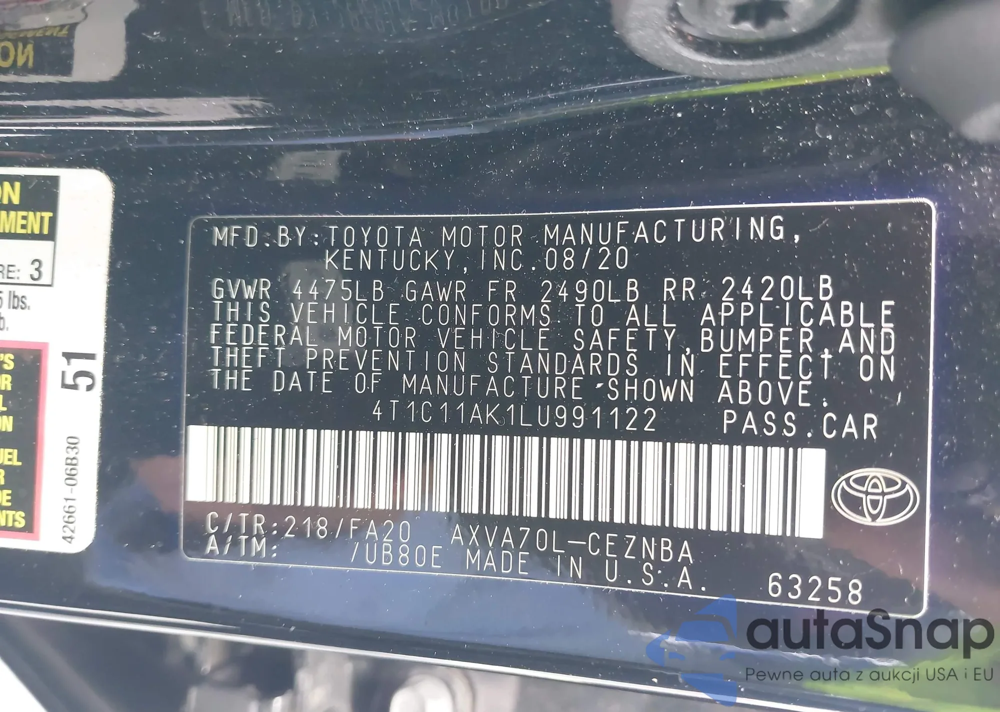 LOT: 42463293 VIN: 4T1C11AK1LU991122