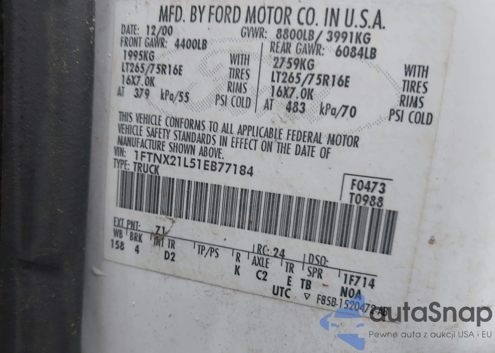 LOT: 42466978 VIN: 1FTNX21L51EB77184