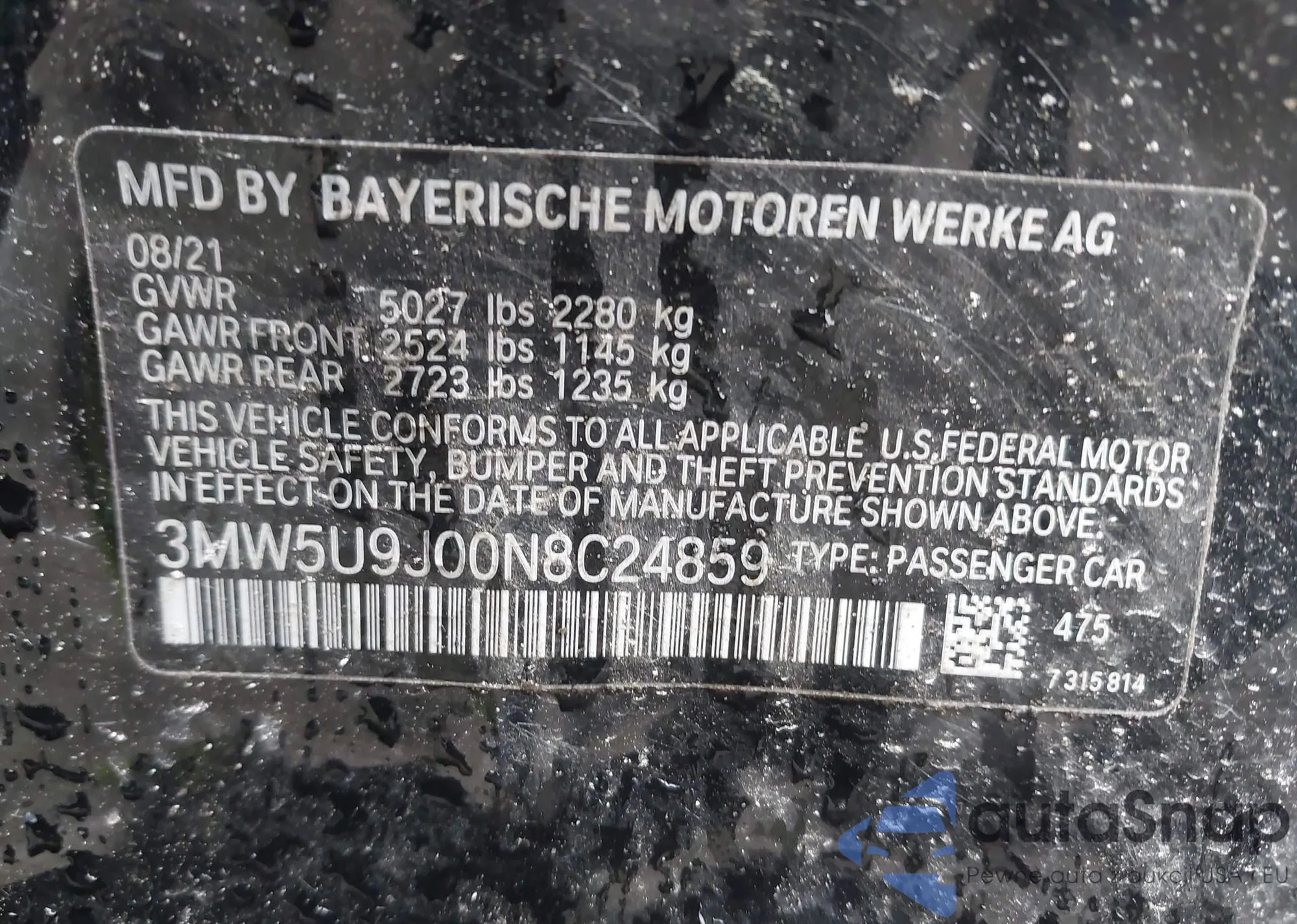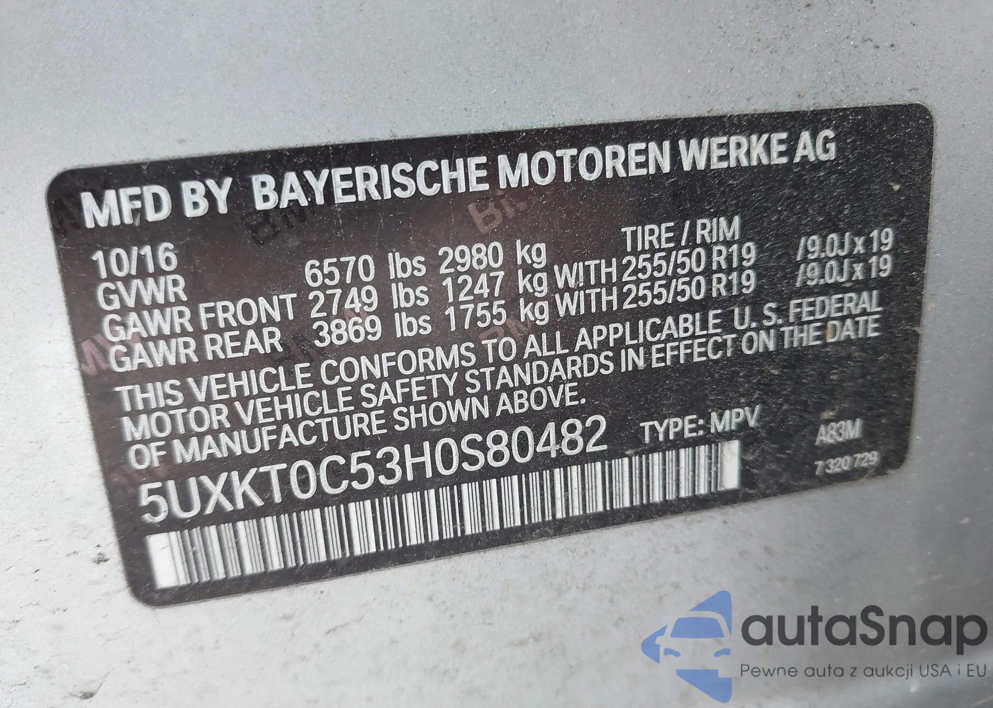 LOT: 42459780 VIN: 5UXKT0C53H0S80482