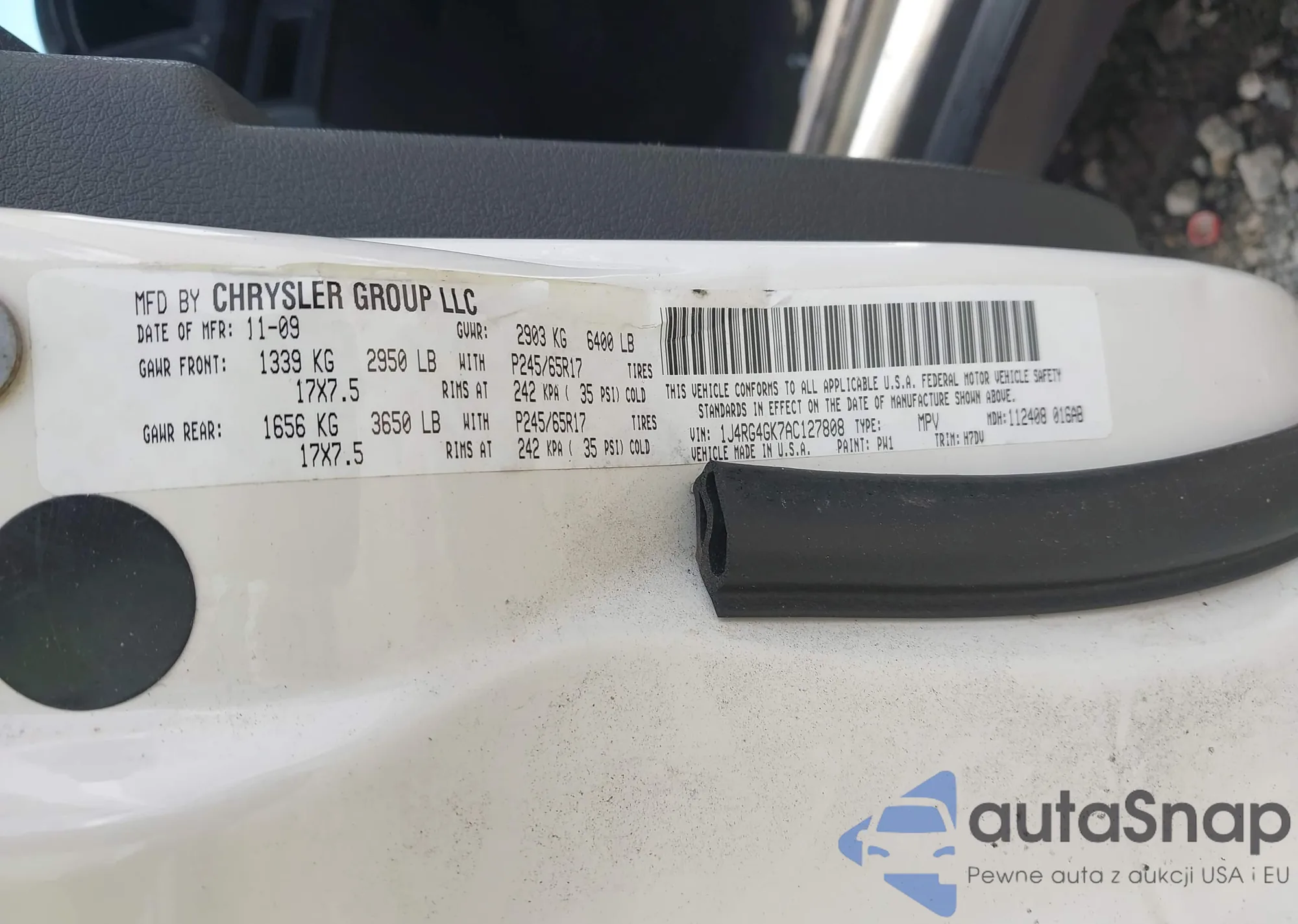 LOT: 42479312 VIN: 1J4RG4GK7AC127808