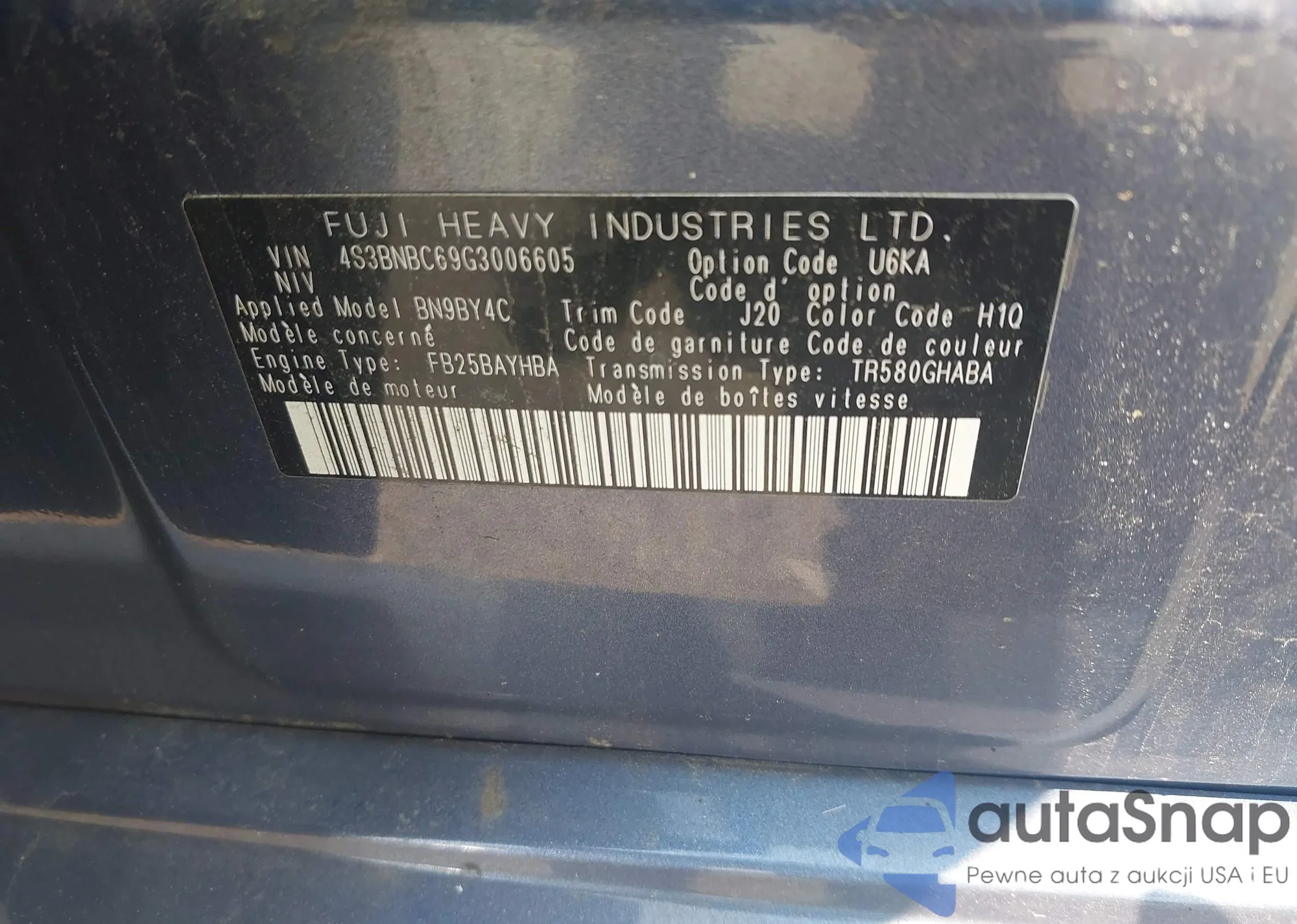 LOT: 42483913 VIN: 4S3BNBC69G3006605