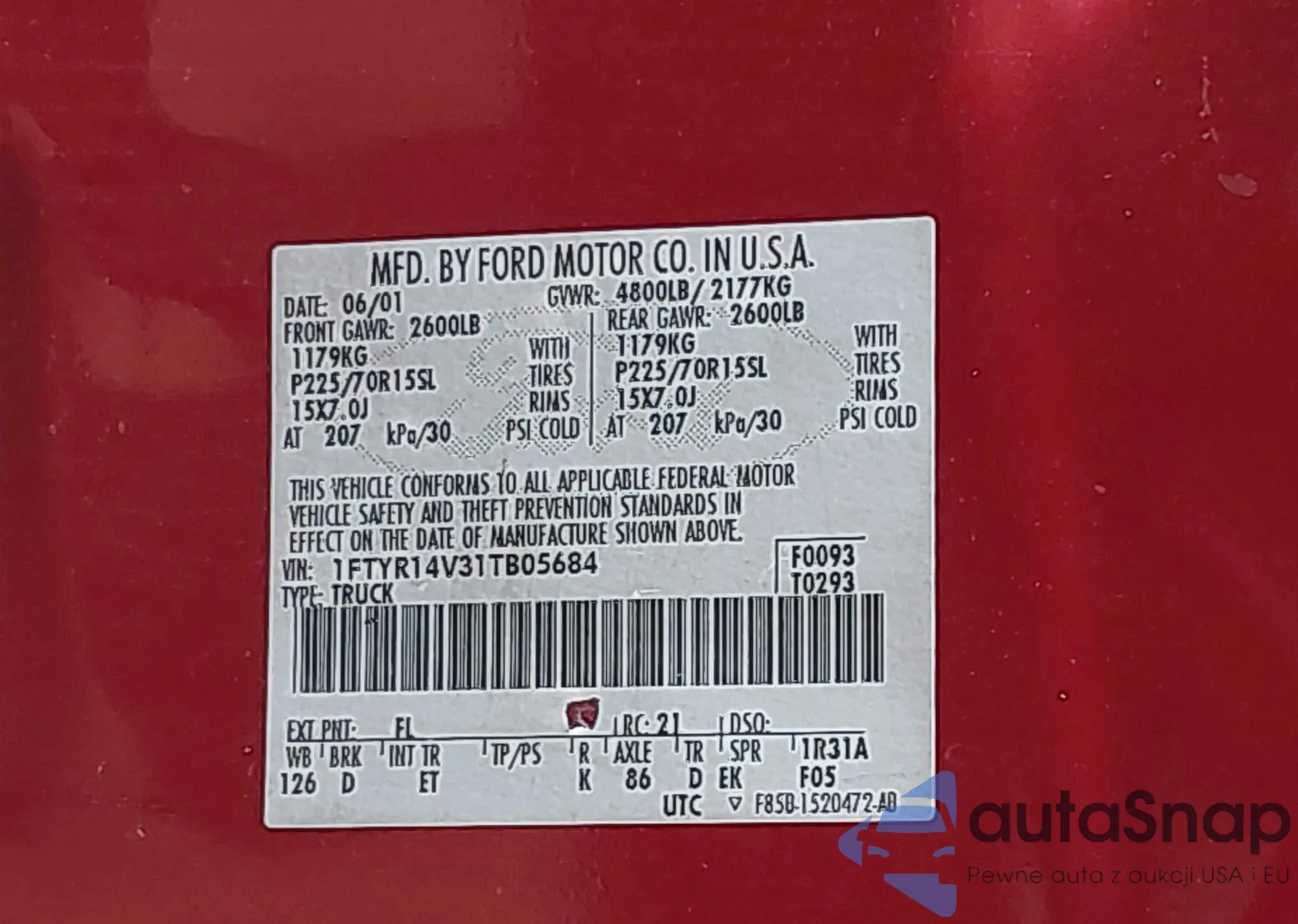 LOT: 42602369 VIN: 1FTYR14V31TB05684