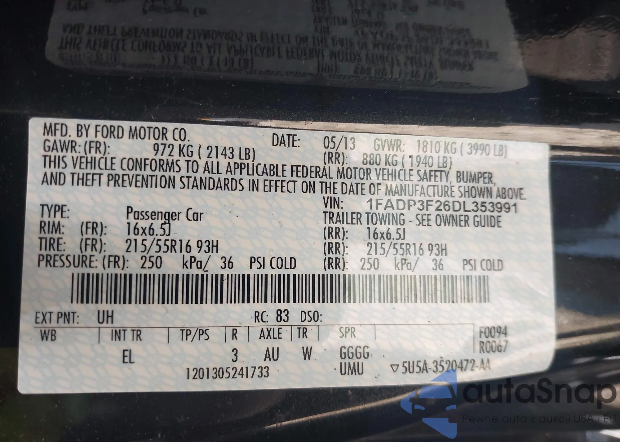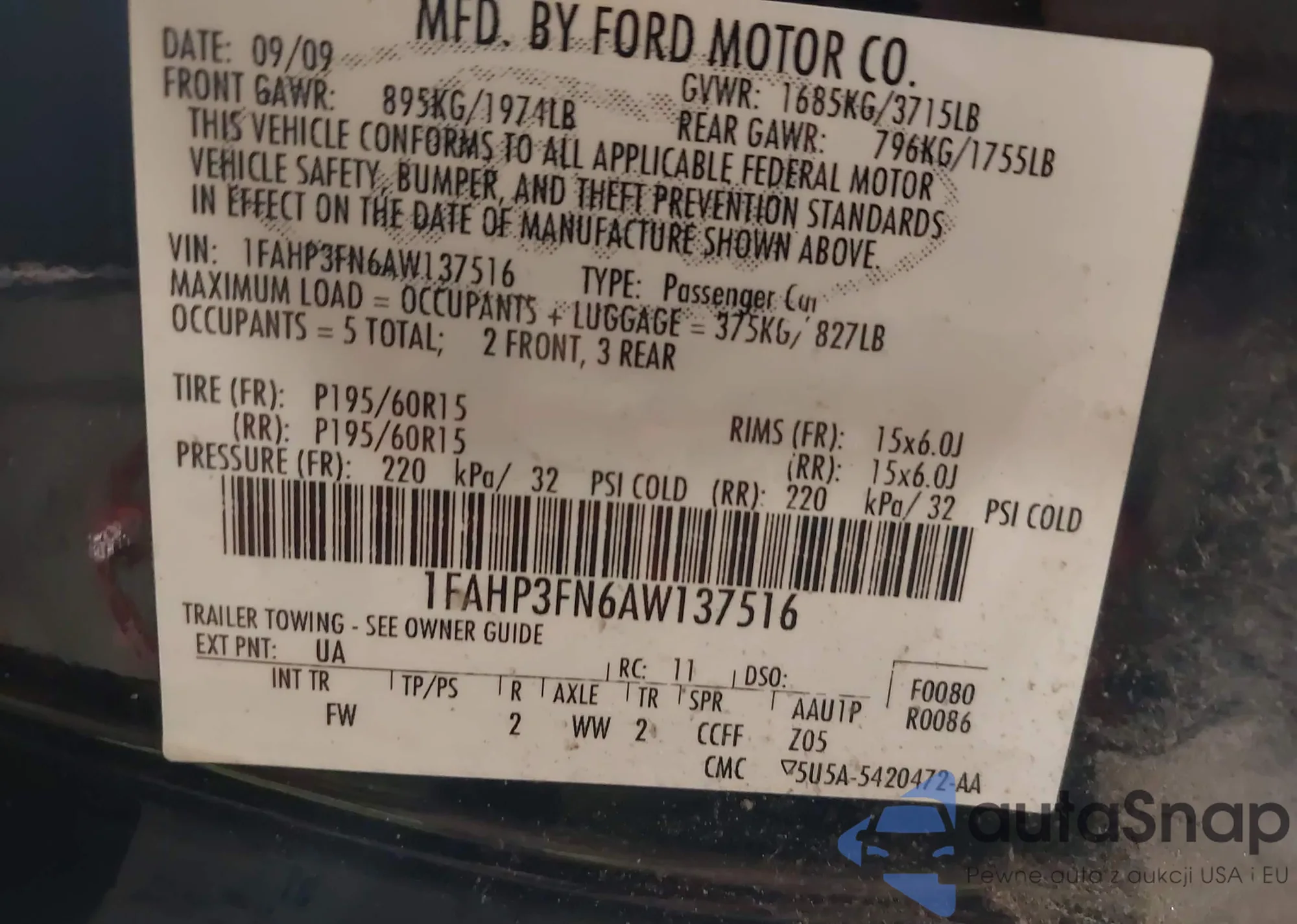 • VIN 1FAHP3FN6AW137516