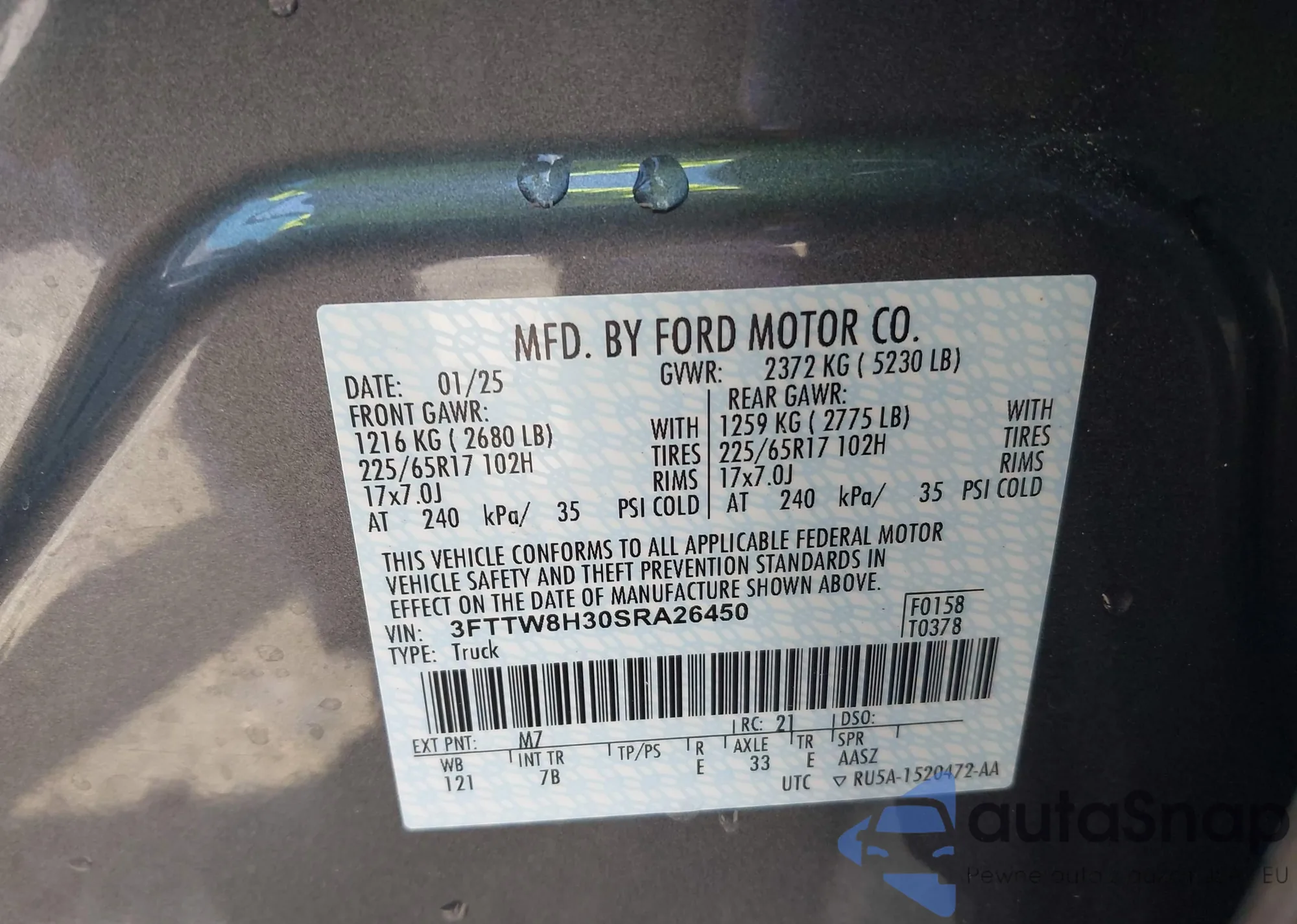 • VIN 3FTTW8H30SRA26450
