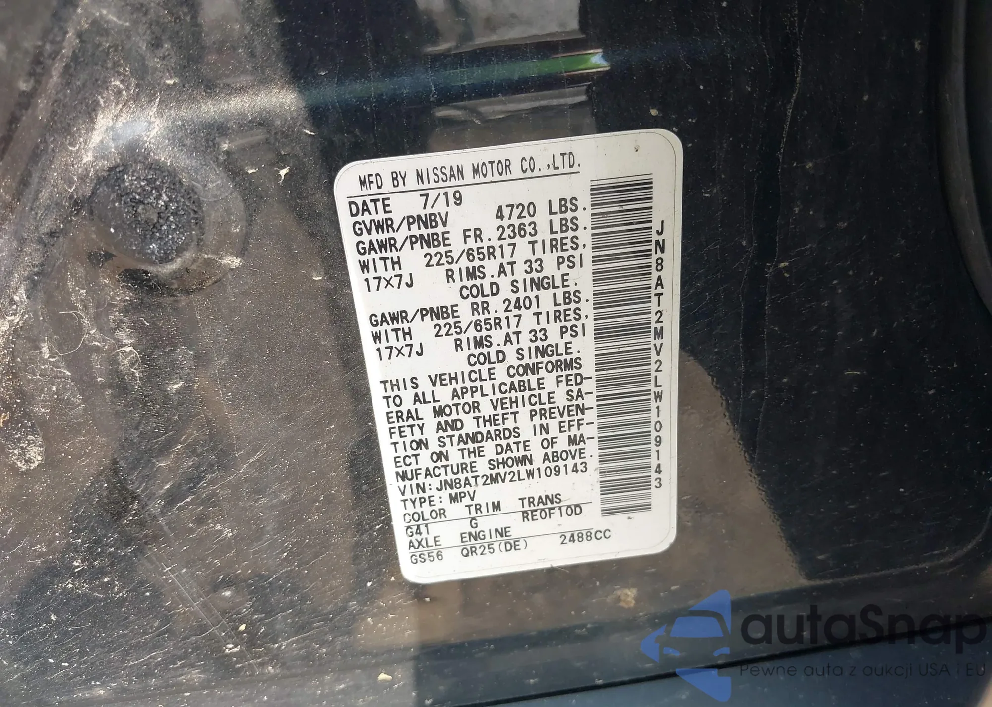 LOT: 42467404 VIN: JN8AT2MV2LW109143
