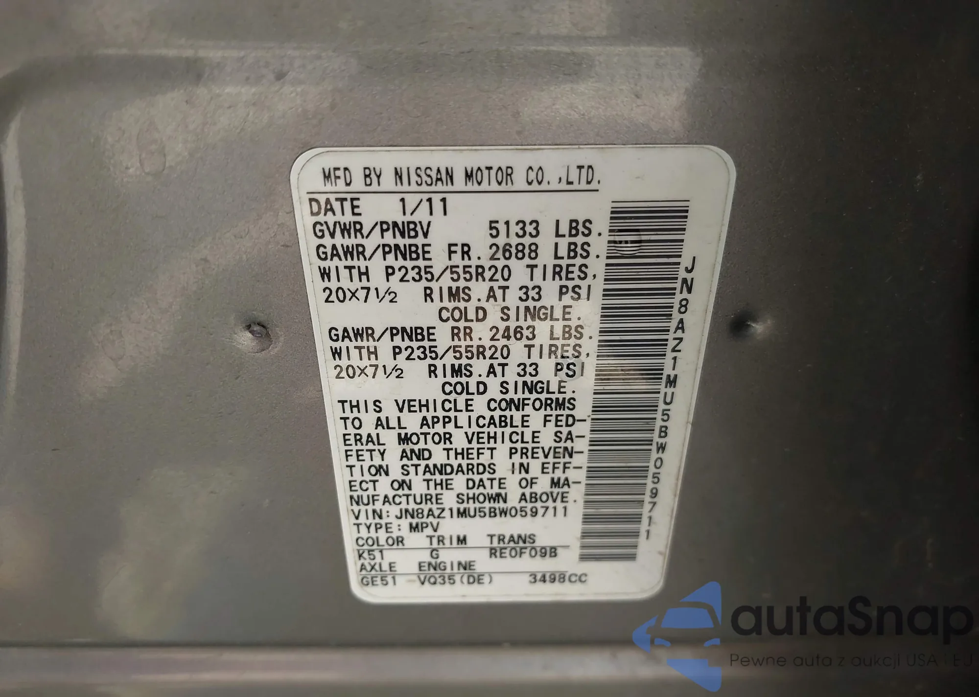 • VIN 1N6BF0LYXMN806801