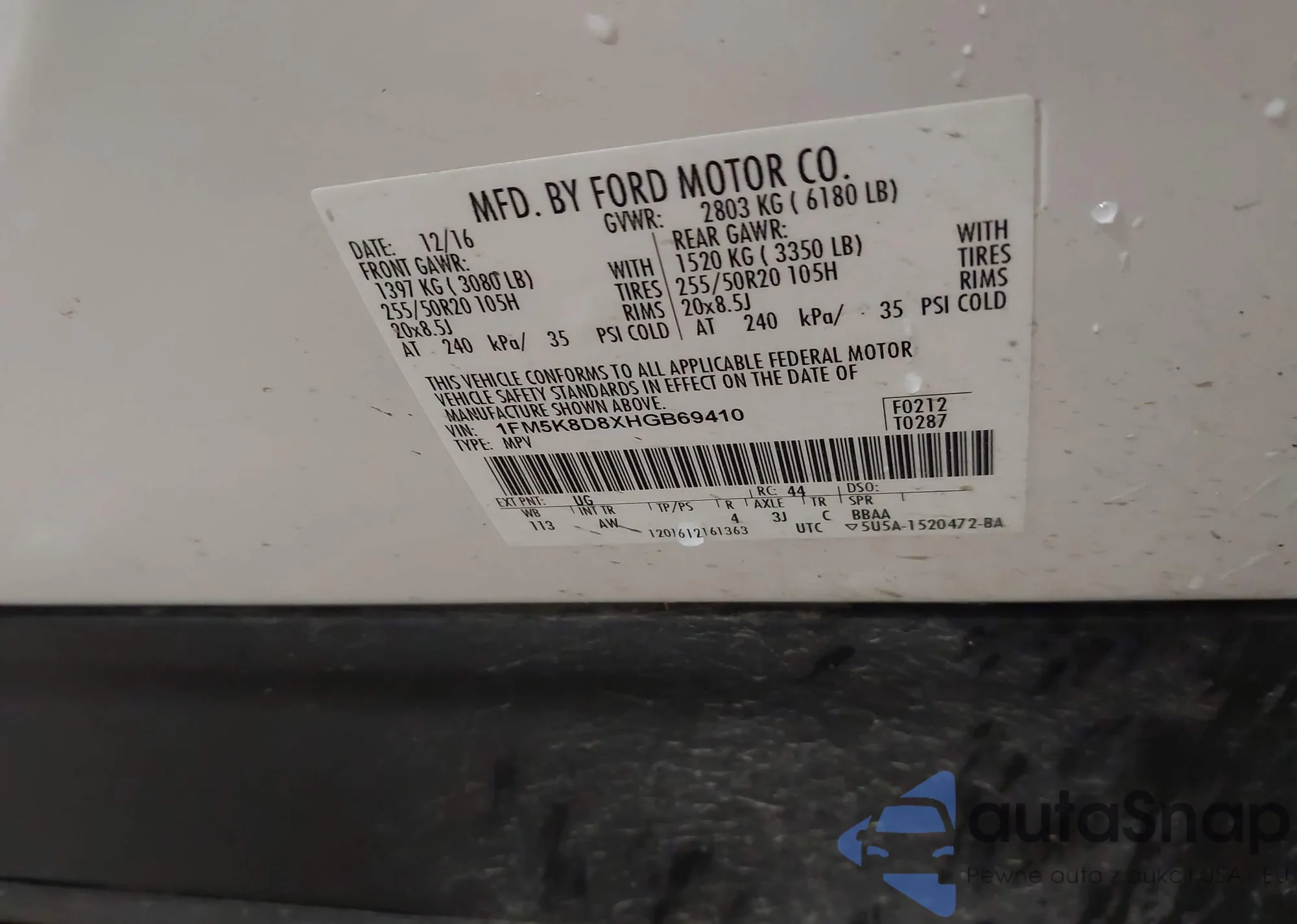 LOT: 42086792 VIN: 1FM5K8D8XHGB69410