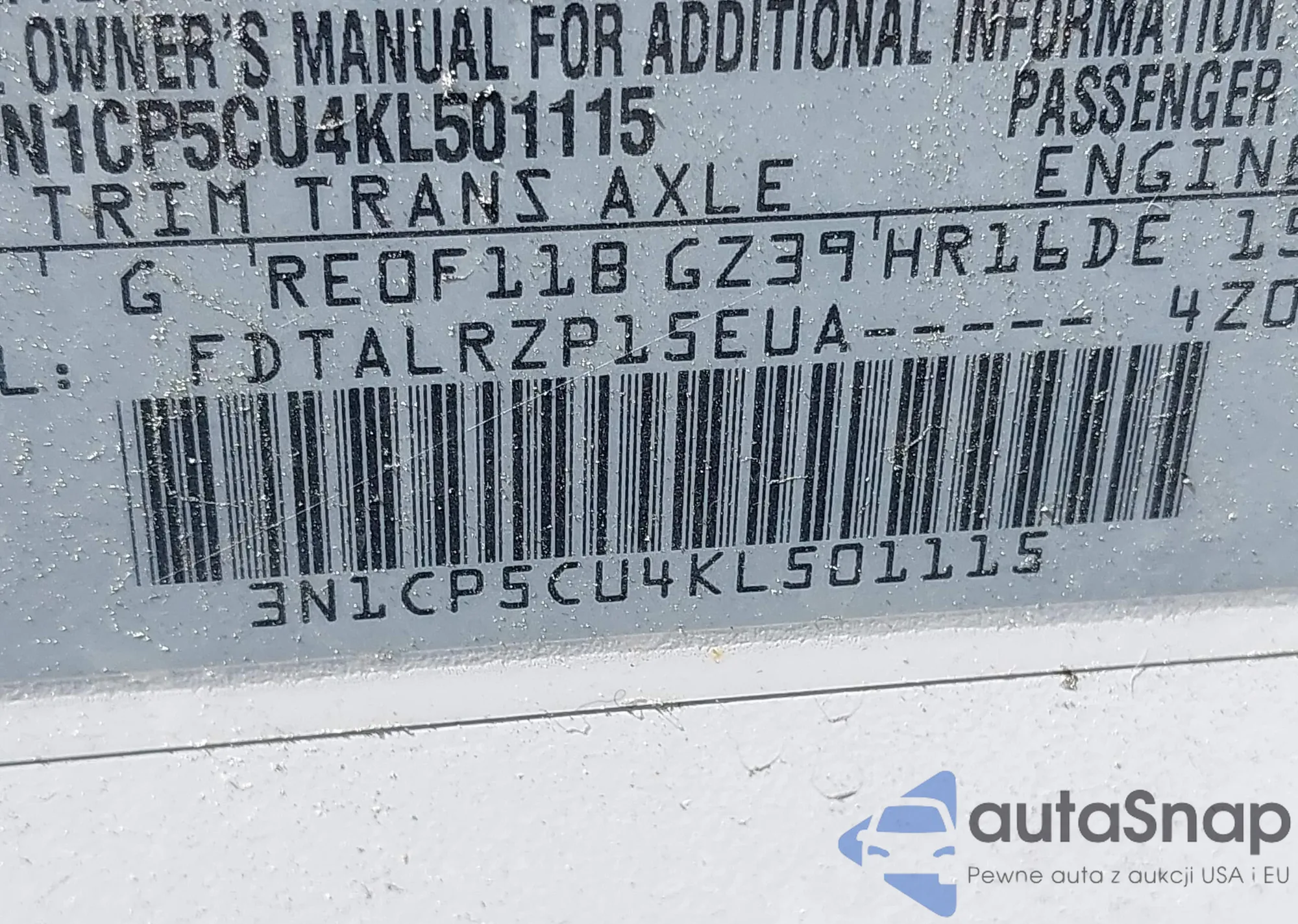 LOT: 42154955 VIN: 3N1CP5CU4KL501115