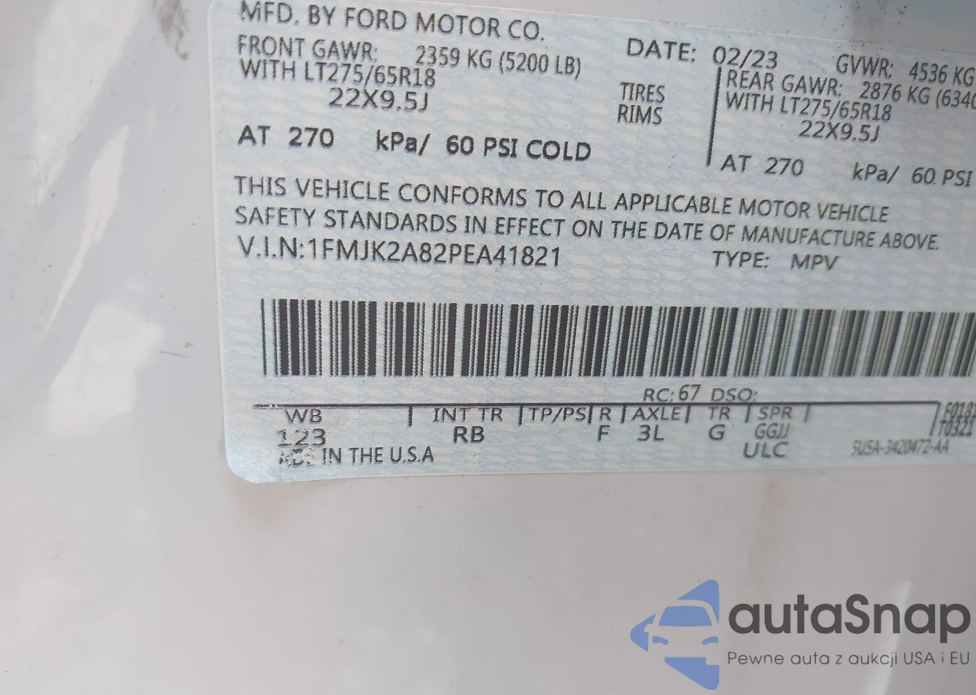• VIN 1FM5K8AB6MGB34308