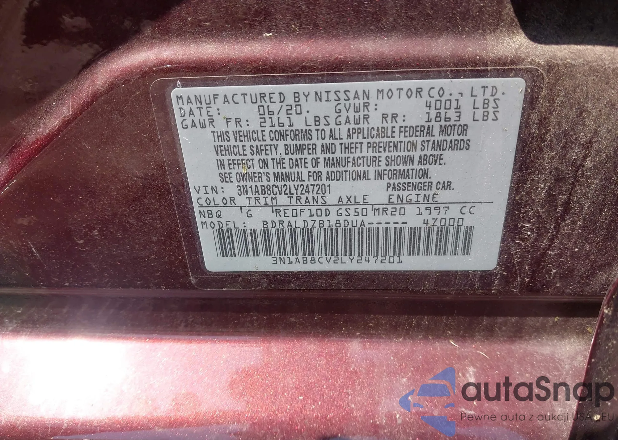 • VIN 3N1AB8CV2LY247201
